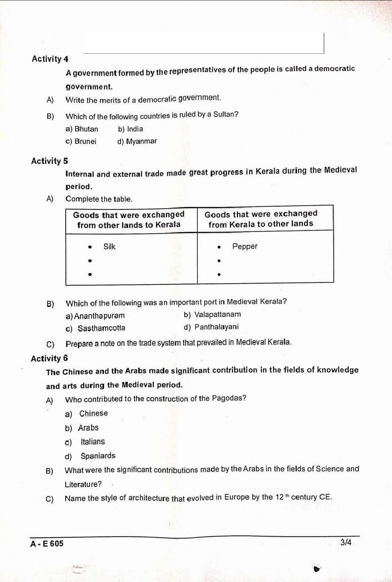 The Kerala Syllabus Question Papers for class 6th Class 6 Social Science is as follows.