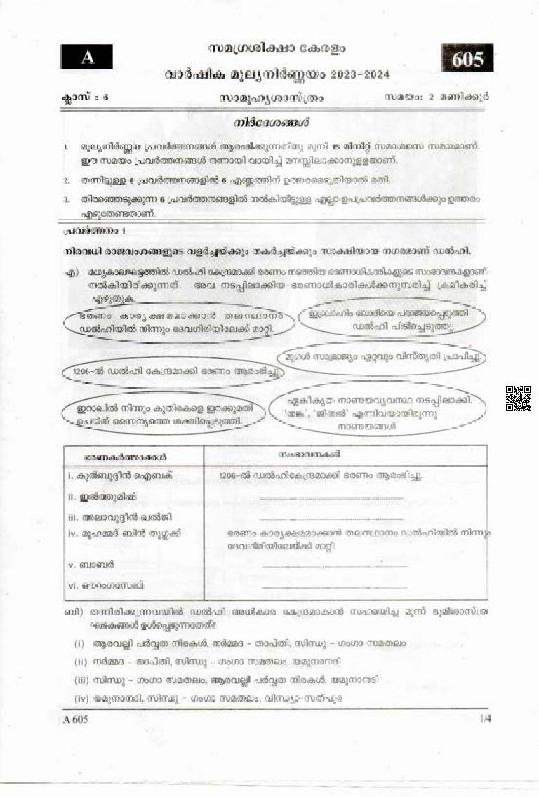 Kerala Class 6 Social Science Question Paper 2024