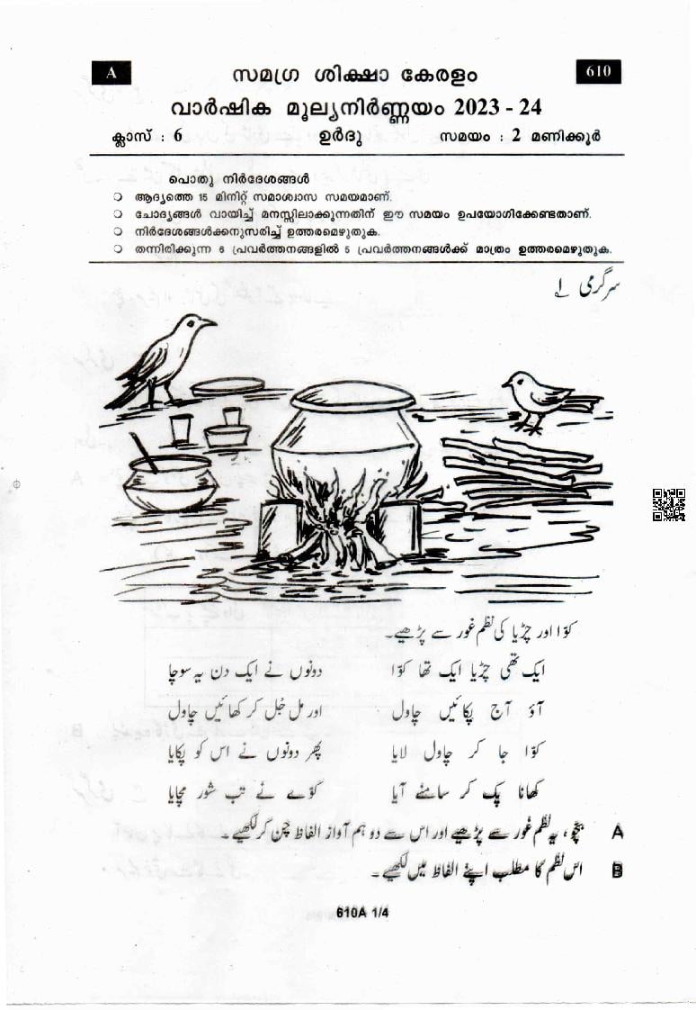 Kerala Class 6 Urdu Question Paper 2024