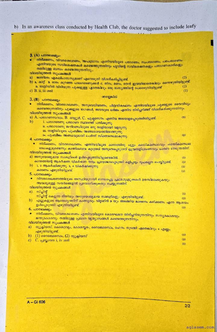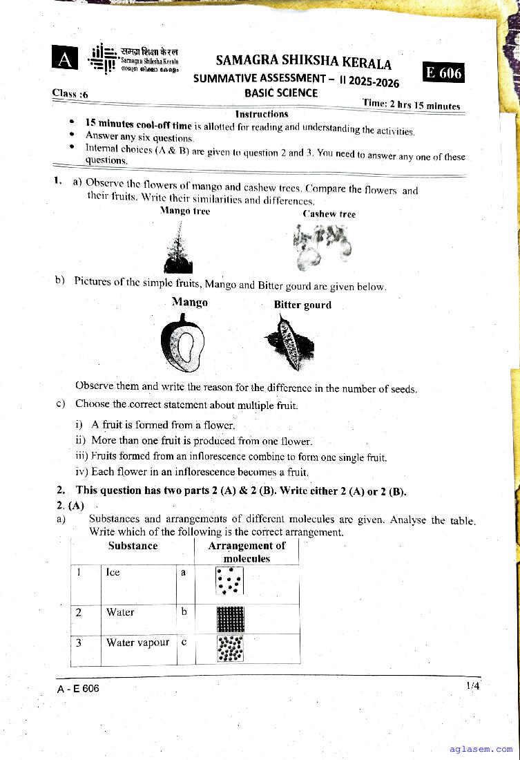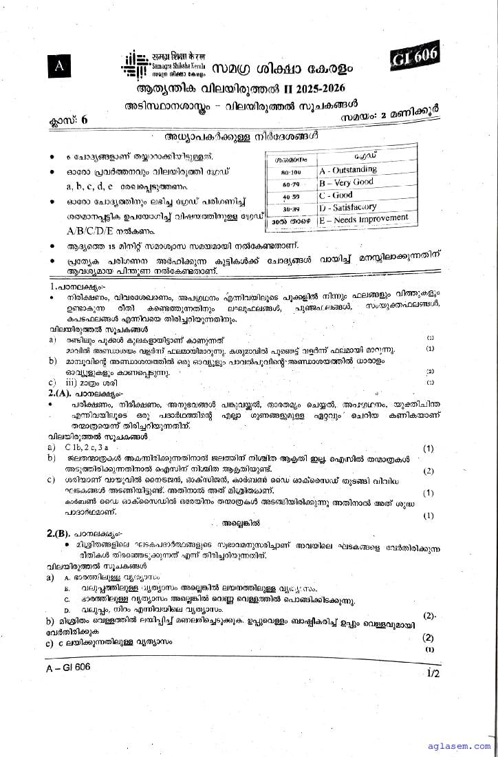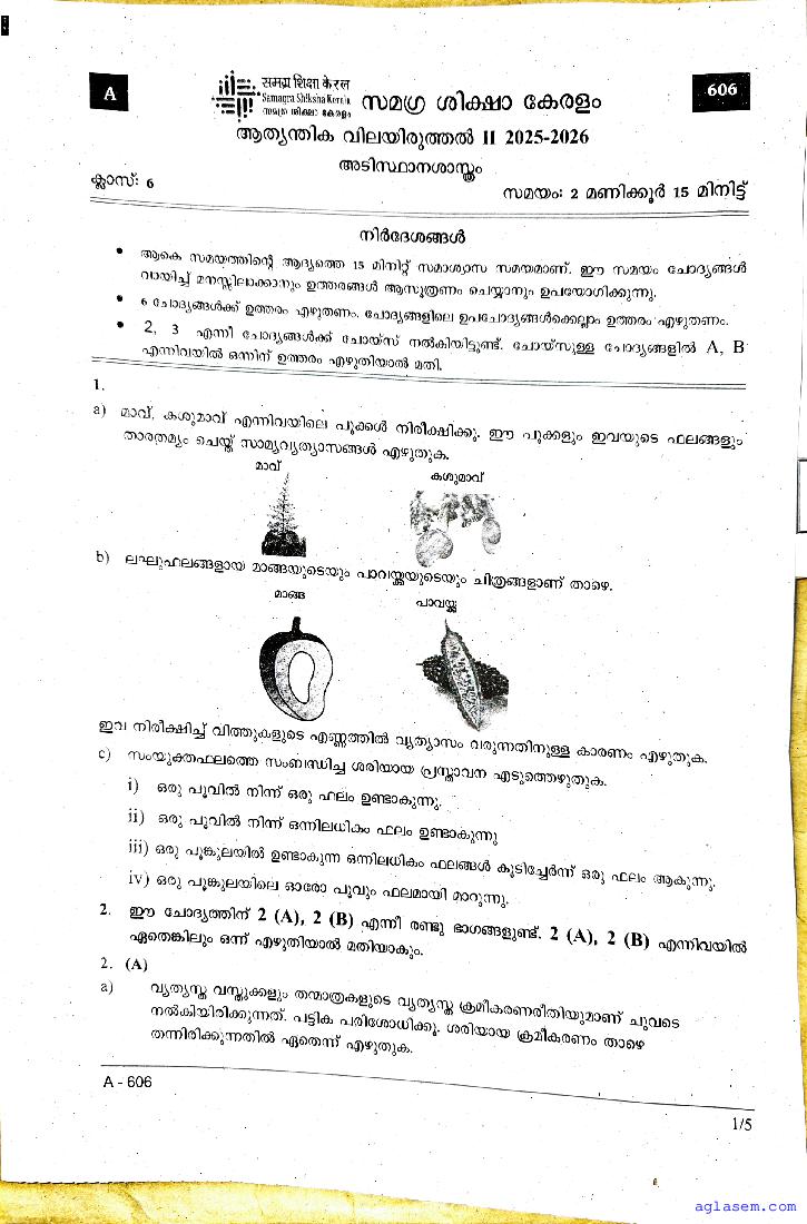 | Paper Here | Kerala Class 6 Second Terminal Exam Basic Science Question Paper |