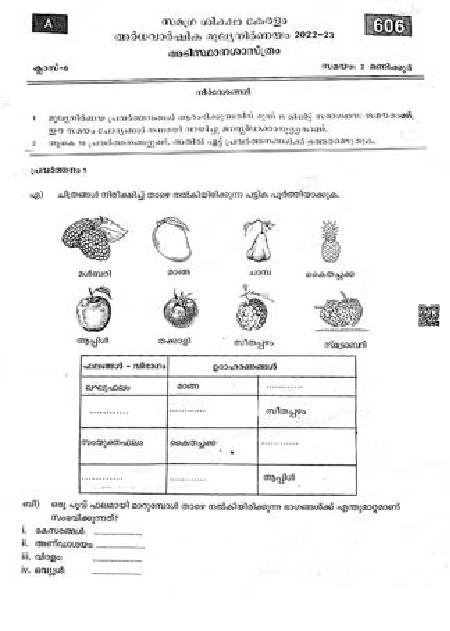 Paper HereKerala Class 6 Second Terminal Exam Basic Science Question Paper