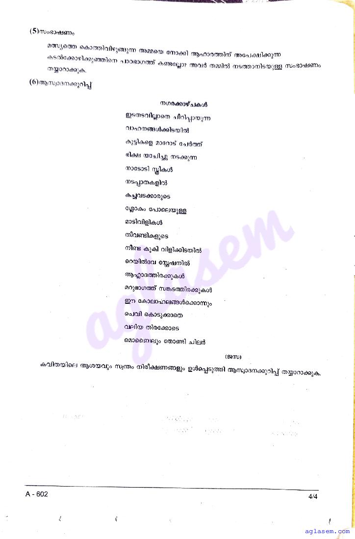 Kerala Std 6 Second Term Malayalam I Question Paper with Answer Keys