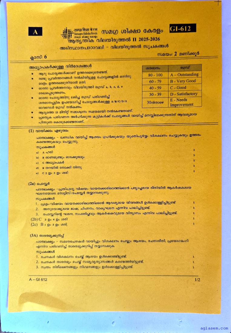 | Paper Here | Kerala Class 6 Second Terminal Exam Malayalam II Question Paper |