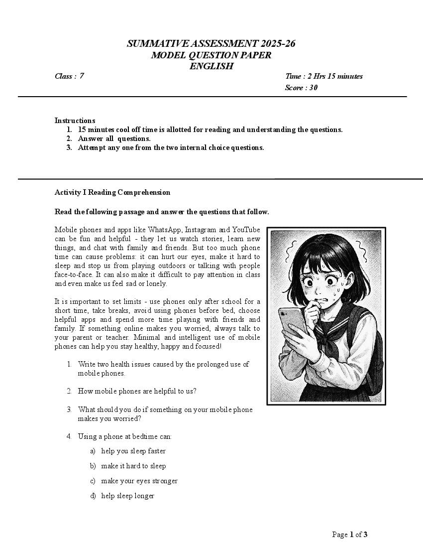- Kerala Class 7 English Model Paper 2026