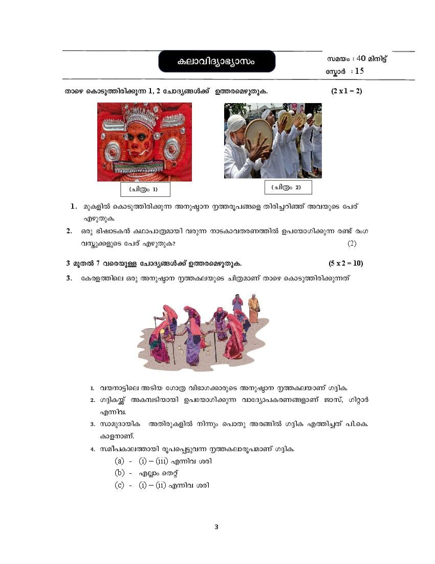 • Class 3 Onam Exam Model Question Papers