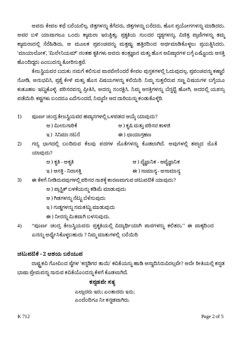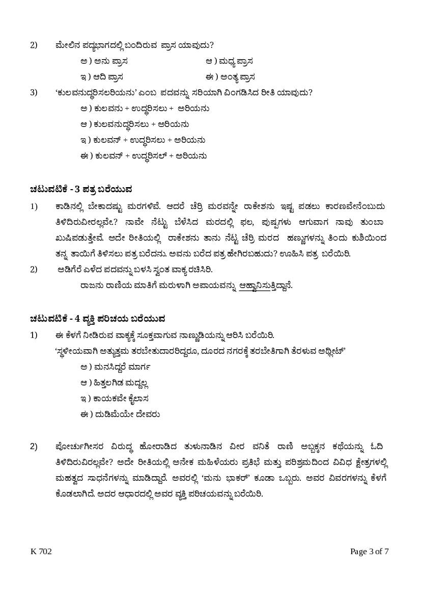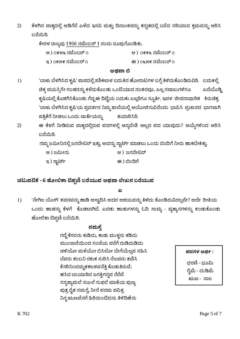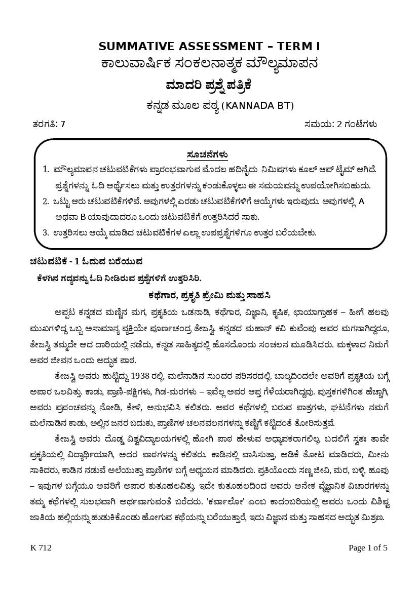 - Kerala 7th Standard Kannada Sample Paper PDF