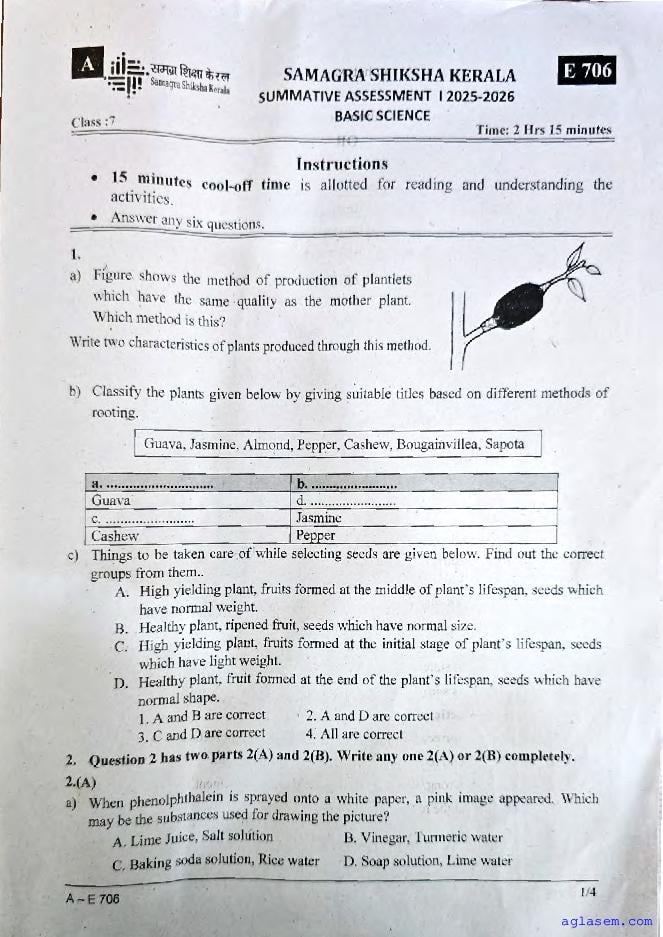 Class 7 Basic Science Onam Exam Question Paper 2026 is published after exam. You can download the Kerala Std 7 First Term Basic Science Question Paper PDF from here on aglasem. The latest and previous year question paper of Onam Exam for class 7 Basic Science helps you prepare for the upcoming first term Basic Science test. And after studying with this Kerala Syllabus 7th Standard Basic Science Question Paper, you can download Onam Exam Question Paper for Class 7 for other subjects as well.
