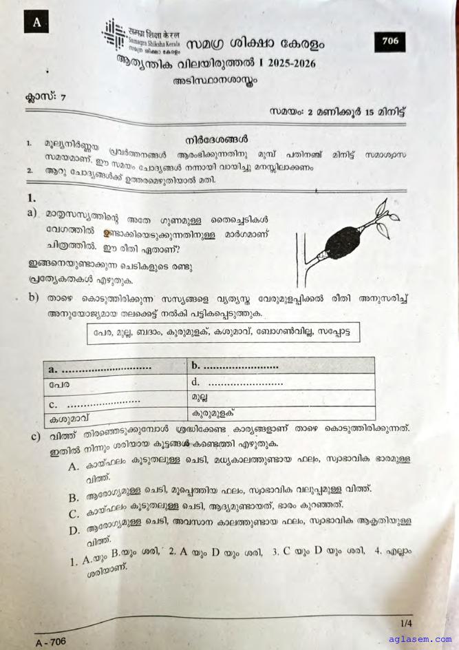 | Paper Here | Kerala Class 7 First Terminal Exam Basic Science Question Paper |