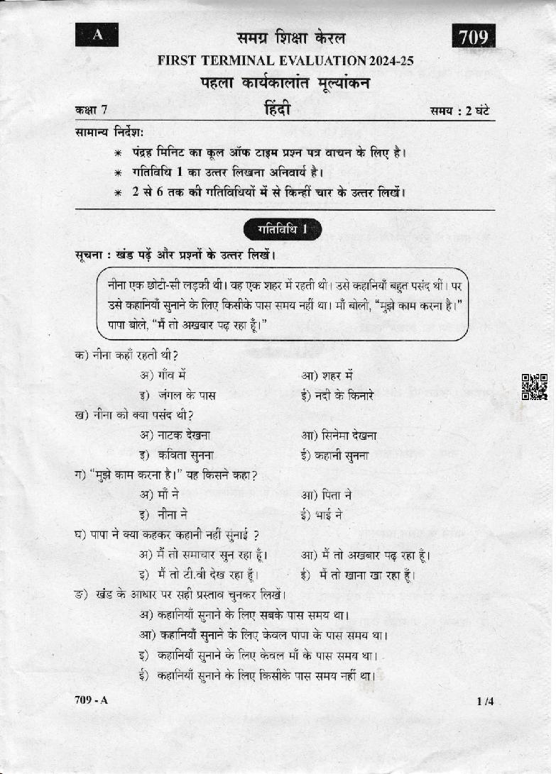 | Paper Here | Kerala Class 7 First Terminal Exam Hindi Question Paper |