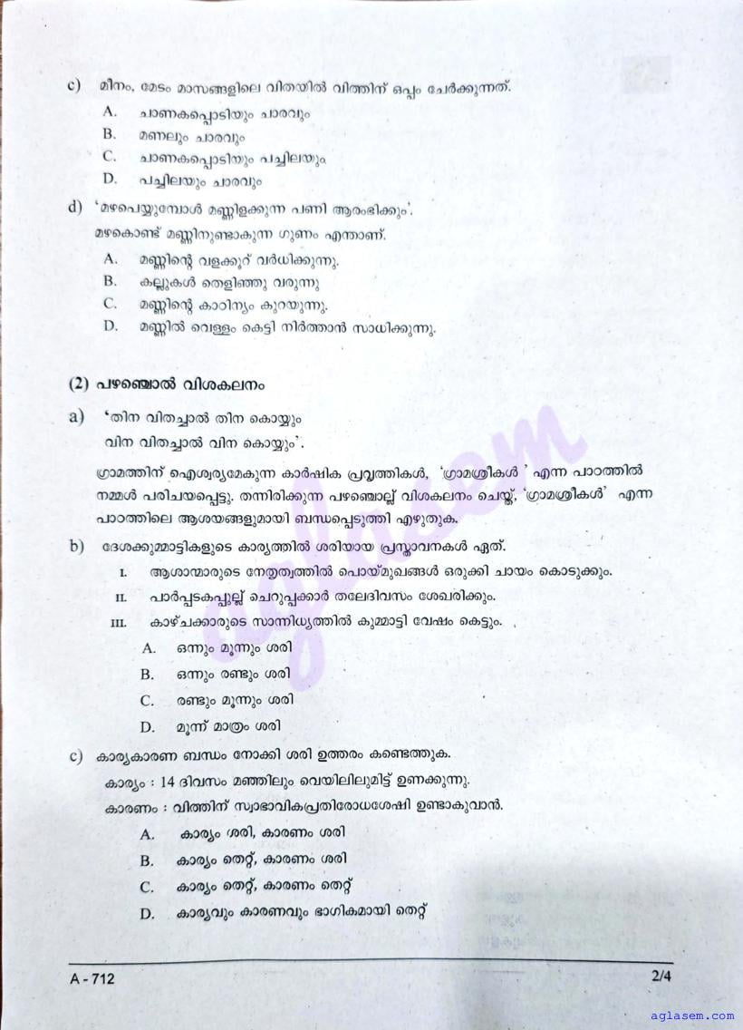 - The Kerala 7th Standard First Term Malayalam I Answer Key contains answers of all questions asked in the test.