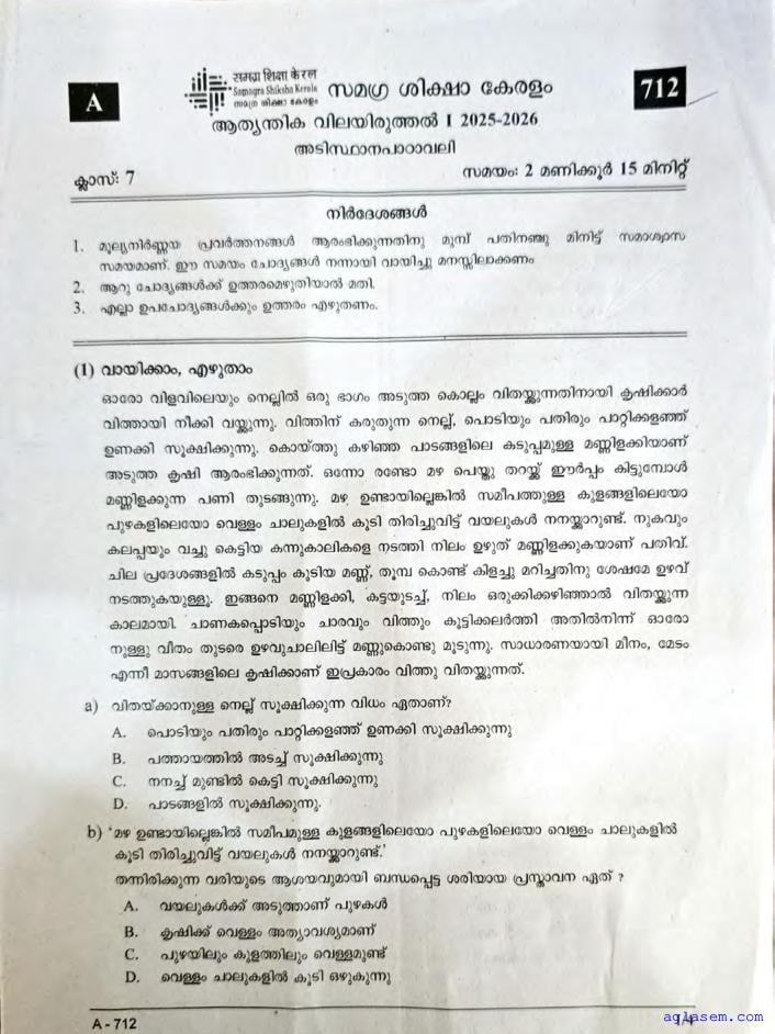 | Paper Here | Kerala Class 7 First Terminal Exam Malayalam II Question Paper |