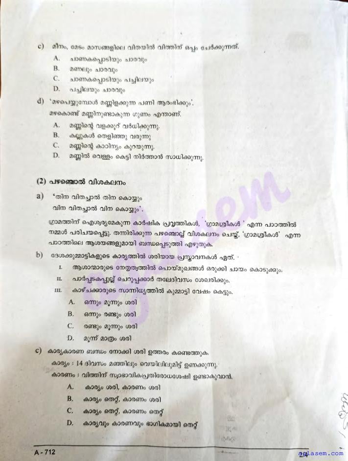 - The Kerala 7th Standard First Term Malayalam II Answer Key contains answers of all questions asked in the test.