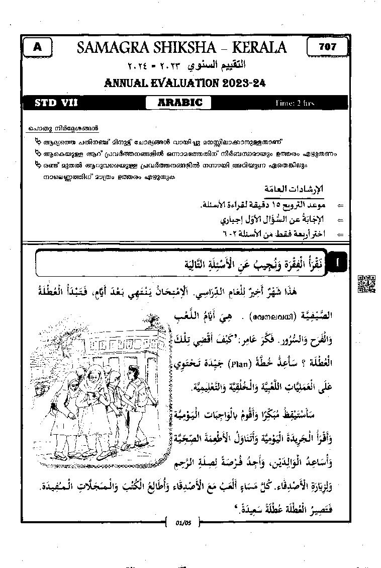 Kerala Class 7th Question Paper 2024 Arabic View Download