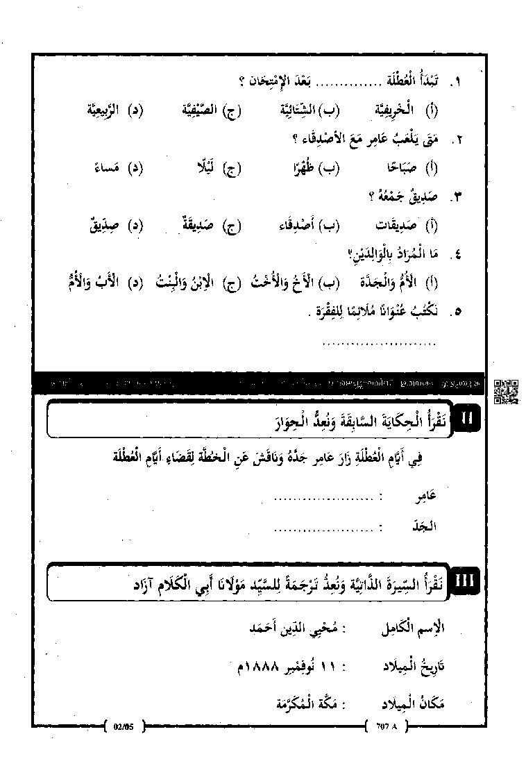 The Kerala Syllabus Question Papers for class 7th Class 7 Arabic is as follows.