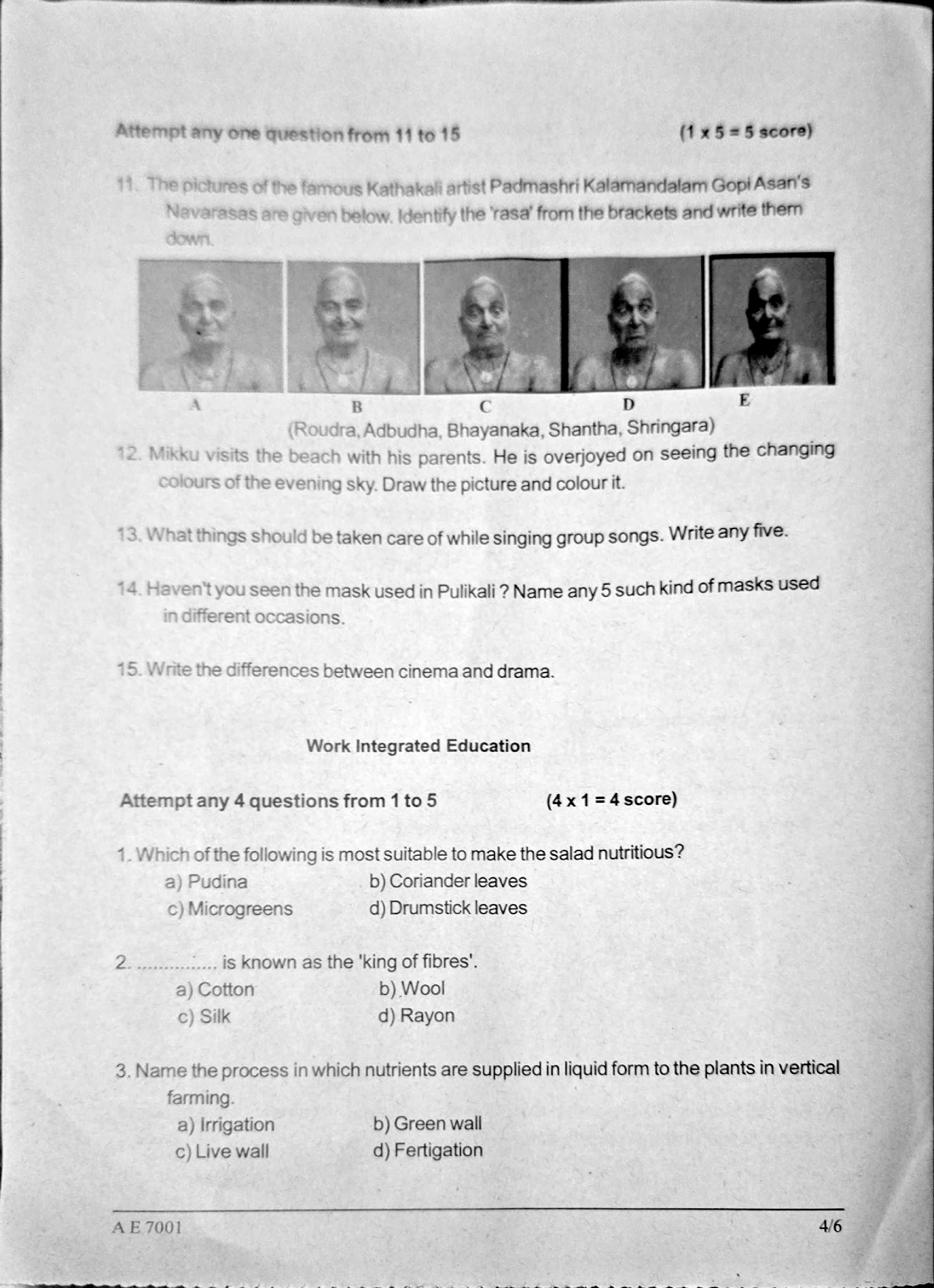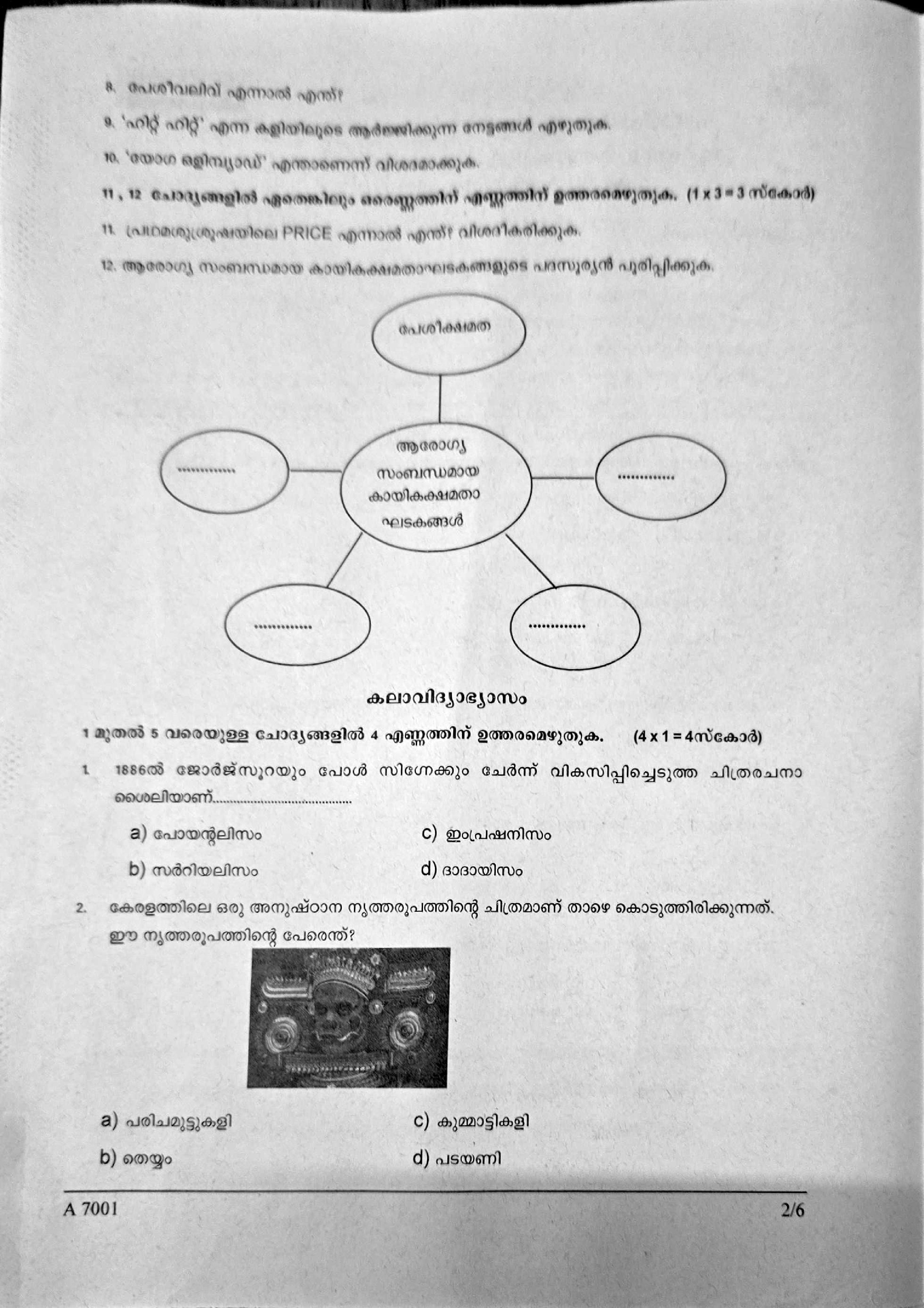The Kerala Syllabus Question Papers for class 7th Class 7 Health and Physical Education, Art Education, Work Education is as follows.