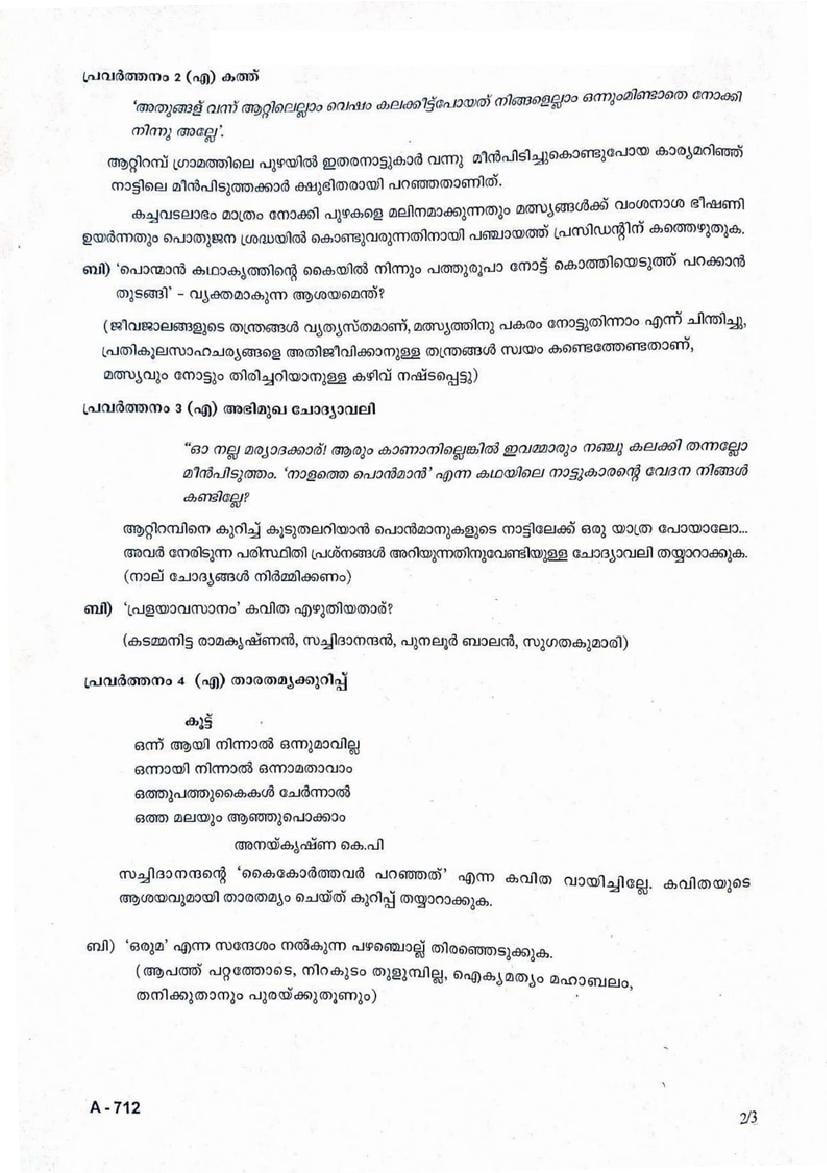 The Kerala Syllabus Question Papers for class 7th Class 7 Malayalam II is as follows.