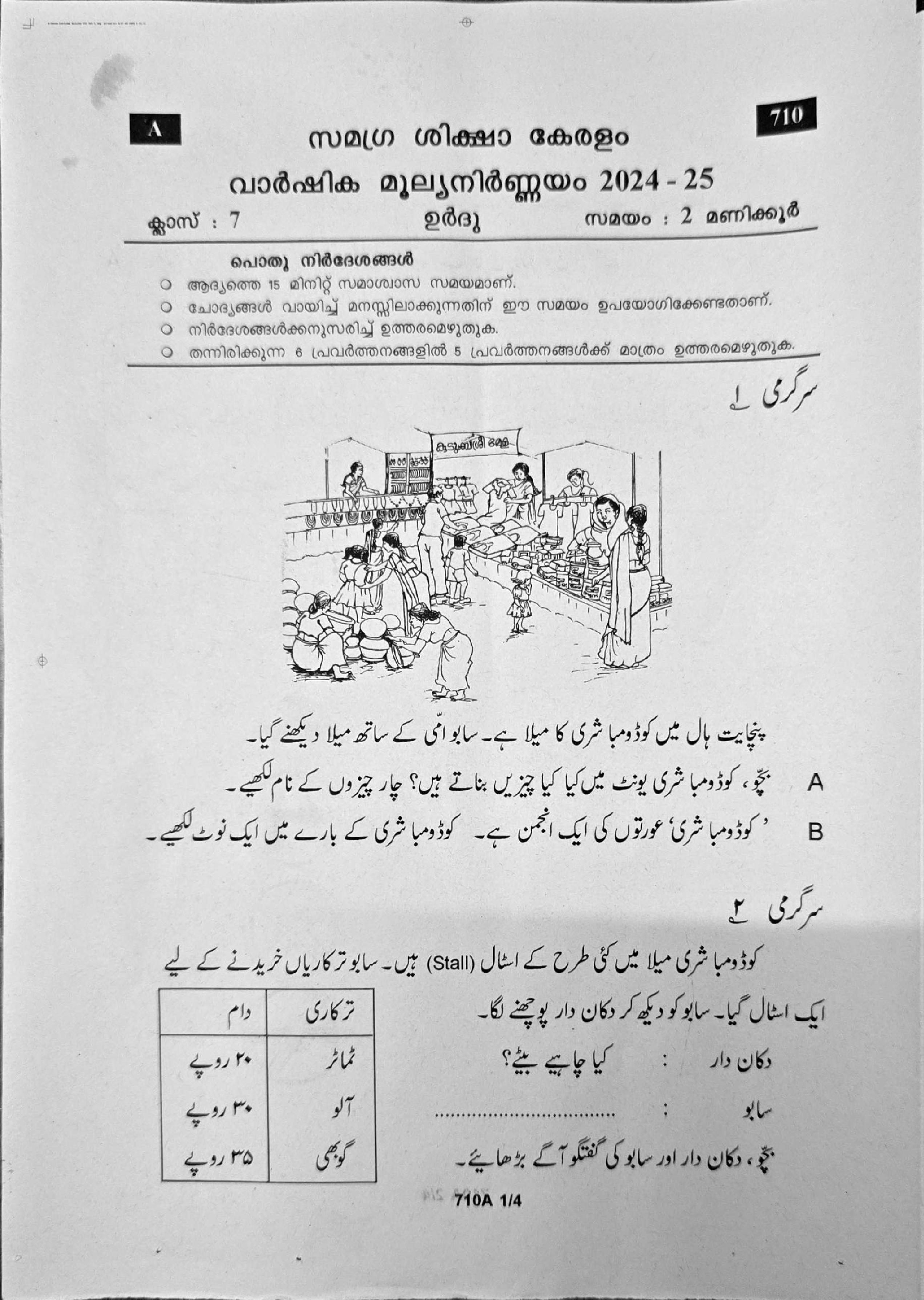 Kerala Class 7 Urdu Question Paper 2025