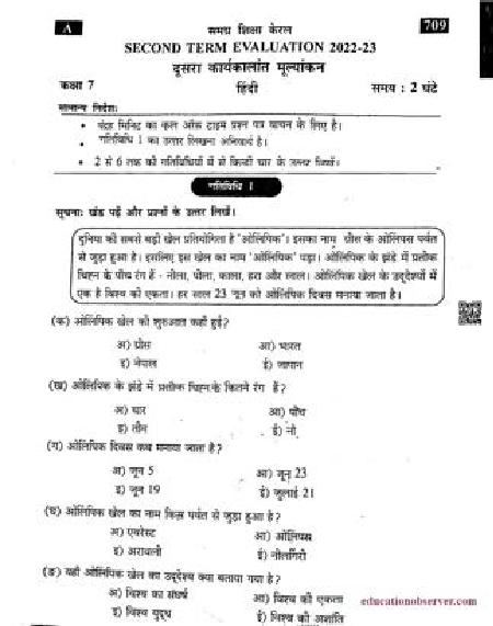 Kerala Class 7 Second Term Question Paper 2022 Hindi View Download