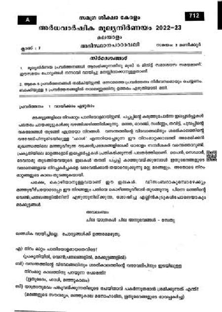 | Paper Here | Kerala Class 7 Second Terminal Exam Malayalam II Question Paper |