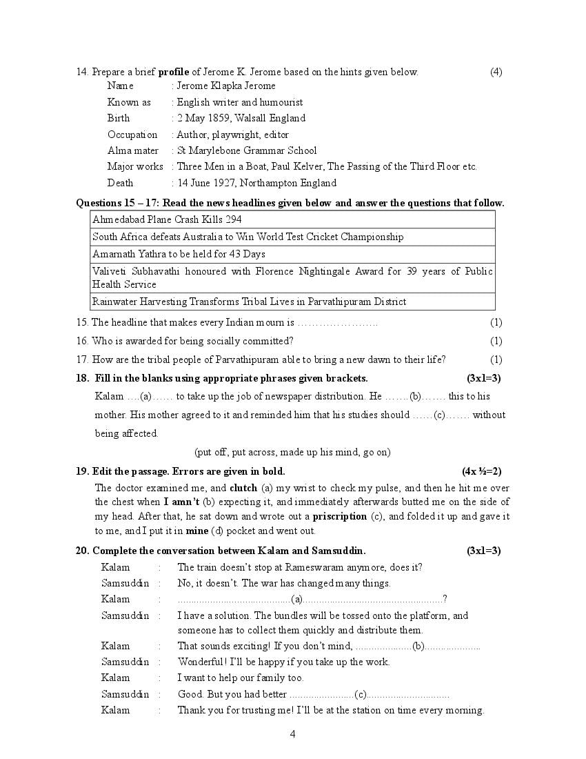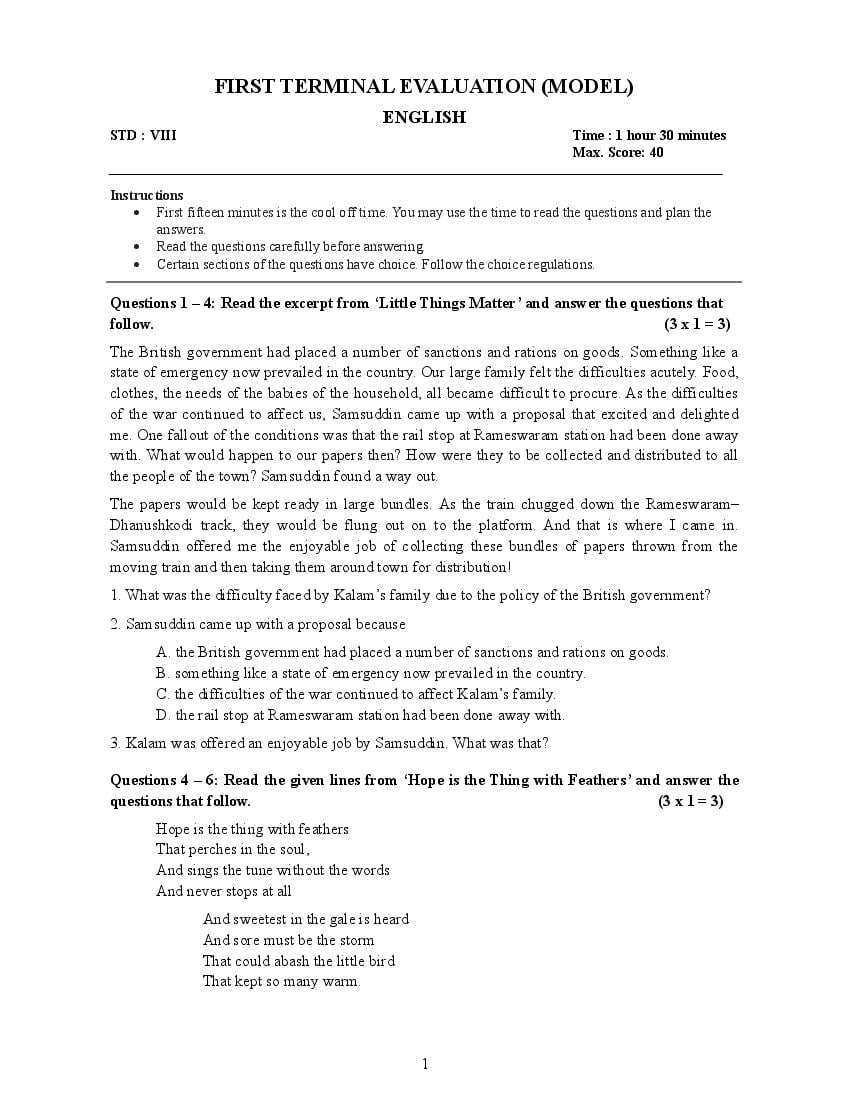 - Kerala Std 8 English Model Question Paper