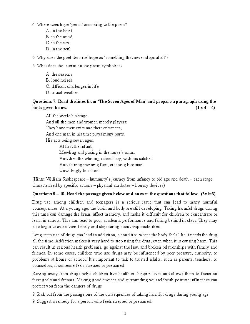- Class 8 English Onam Exam Practice Paper