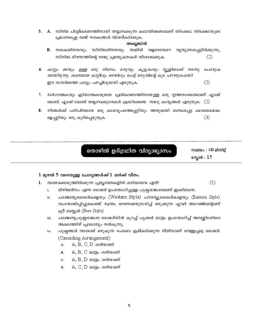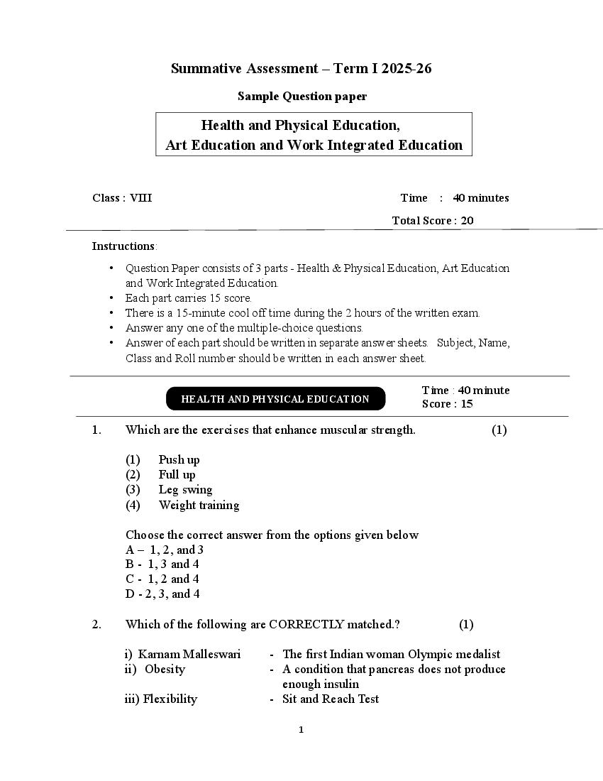 Kerala Class 8 First Term Model Question Paper 2025 Health & Physical Education, Art Education, and Work Integrated Education View Download