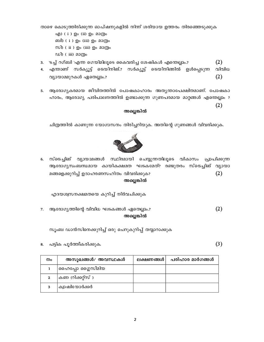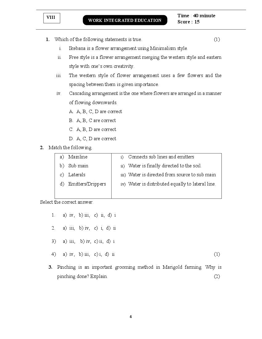 - Kerala Std 8 Health & Physical Education, Art Education, and Work Integrated Education Model Question Paper
