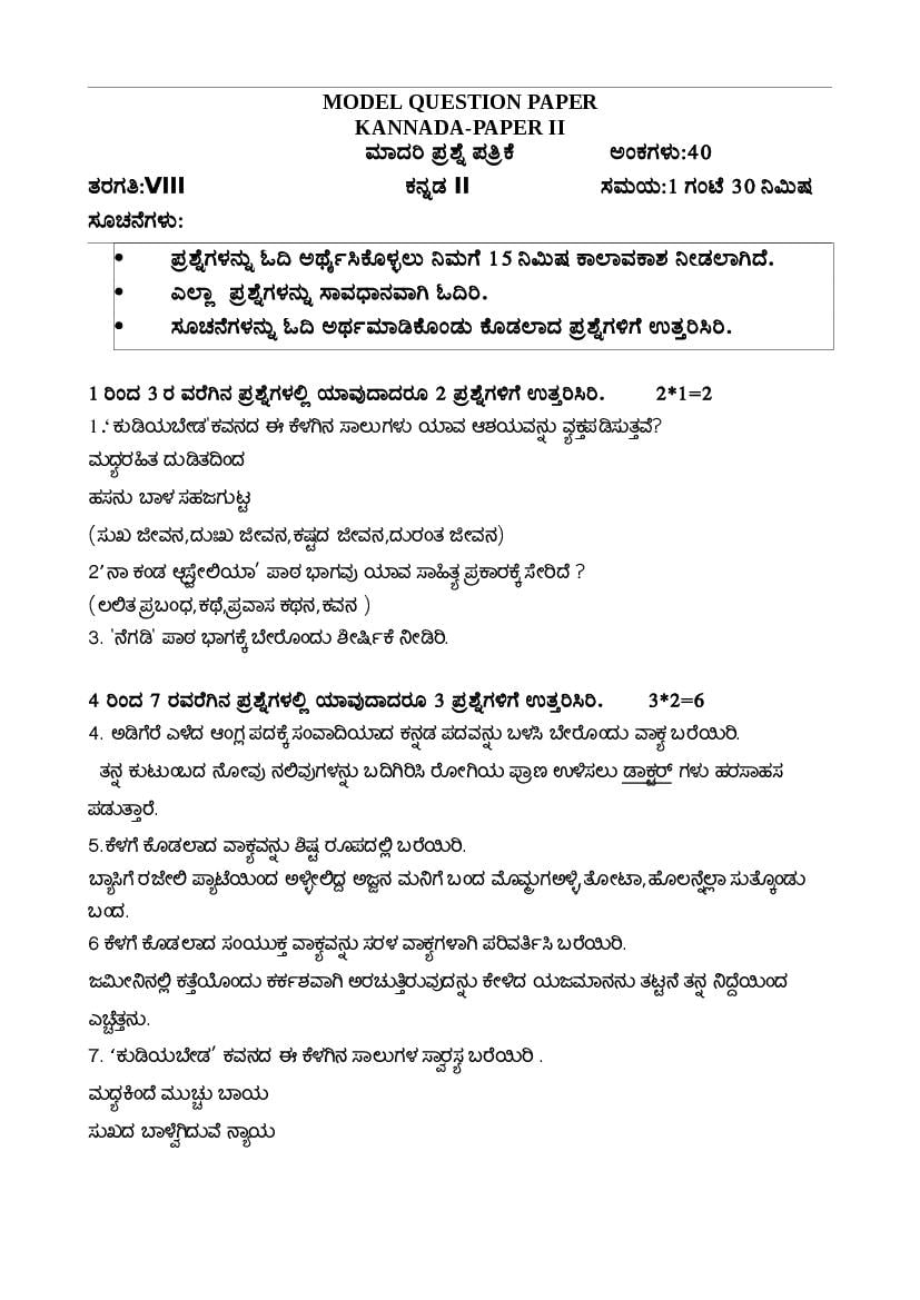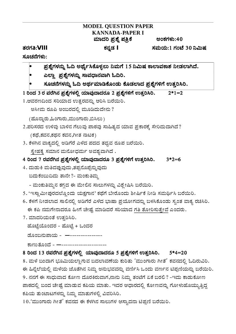 - Kerala 8th Standard Kannada Sample Paper PDF