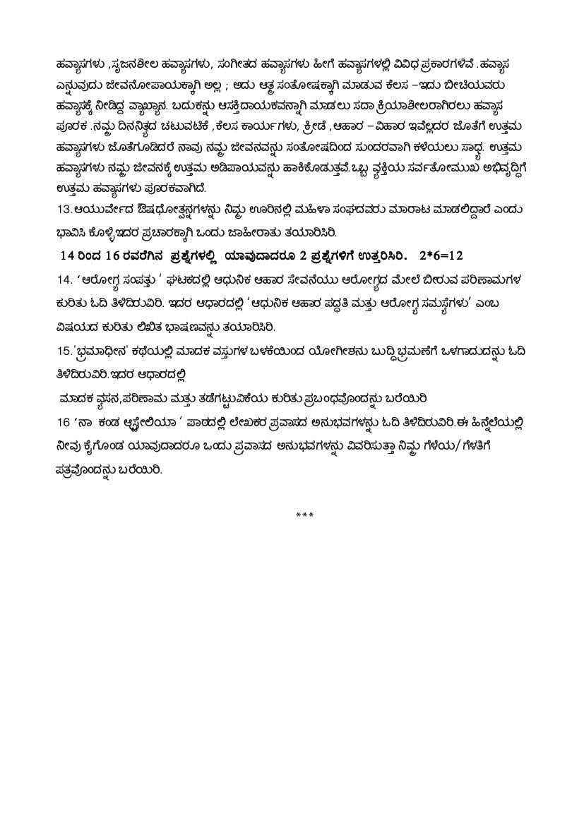 - Class 8 Kannada Onam Exam Practice Paper