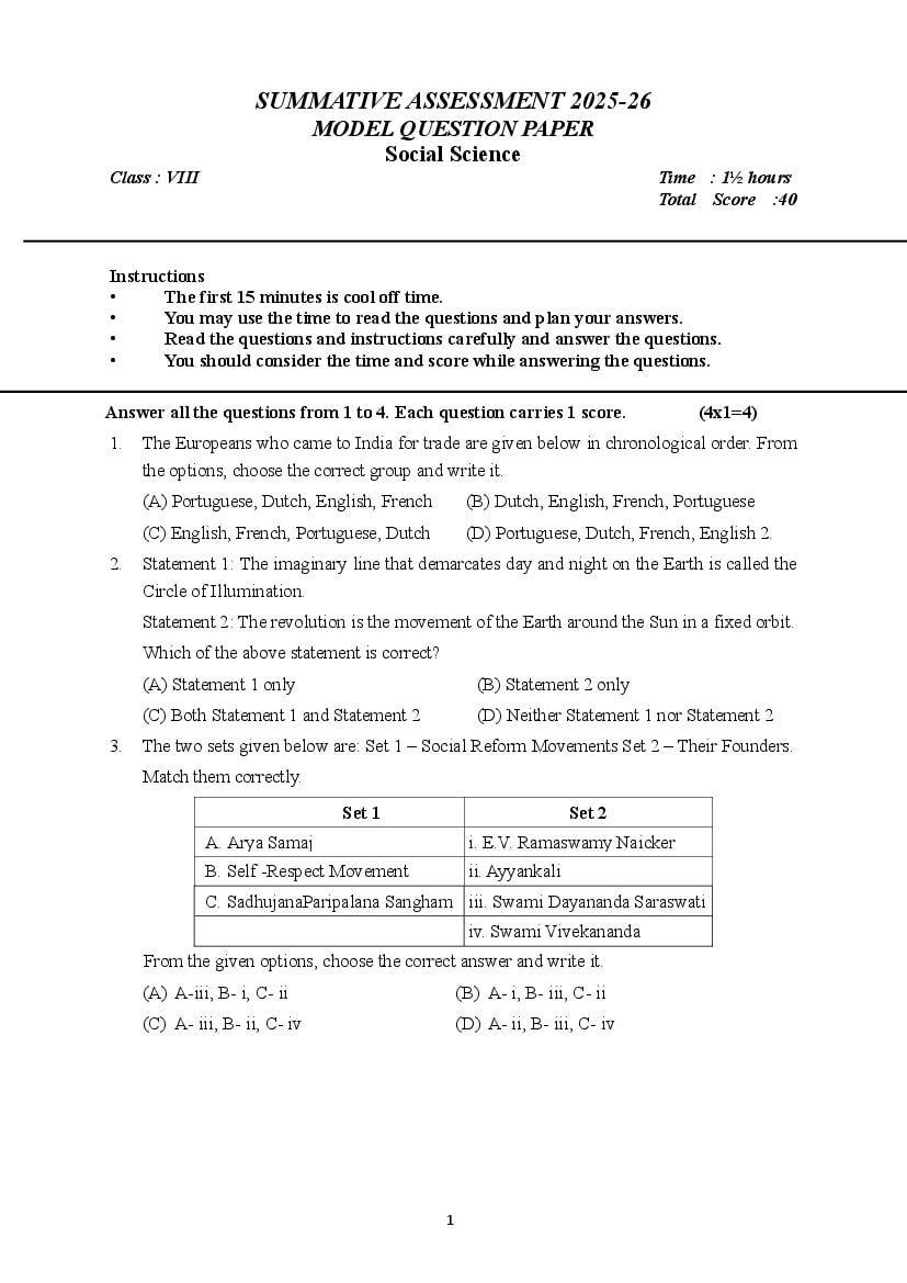 - Kerala 8th Standard Social Science Sample Paper PDF