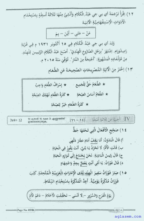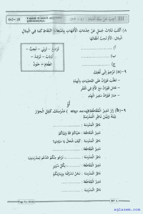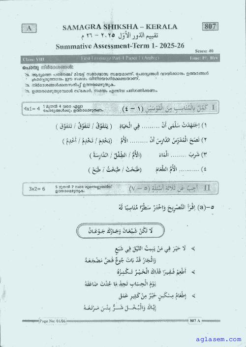 | Paper Here | Kerala Class 8 First Terminal Exam Arabic Question Paper |