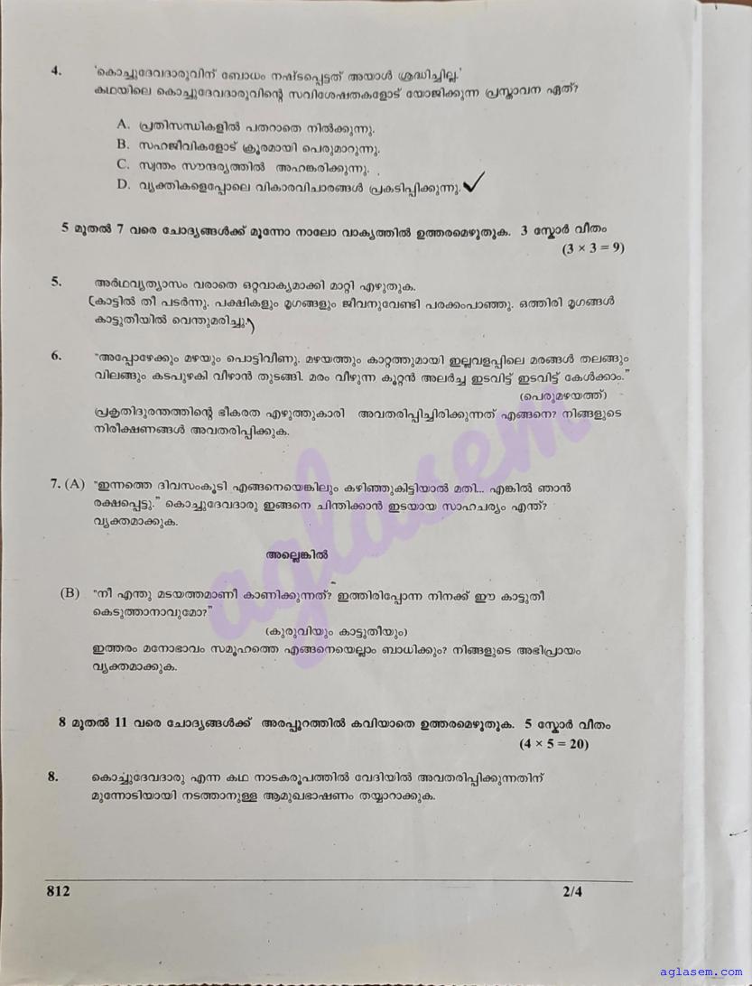 - The Kerala 8th Standard First Term Malayalam II Answer Key contains answers of all questions asked in the test.