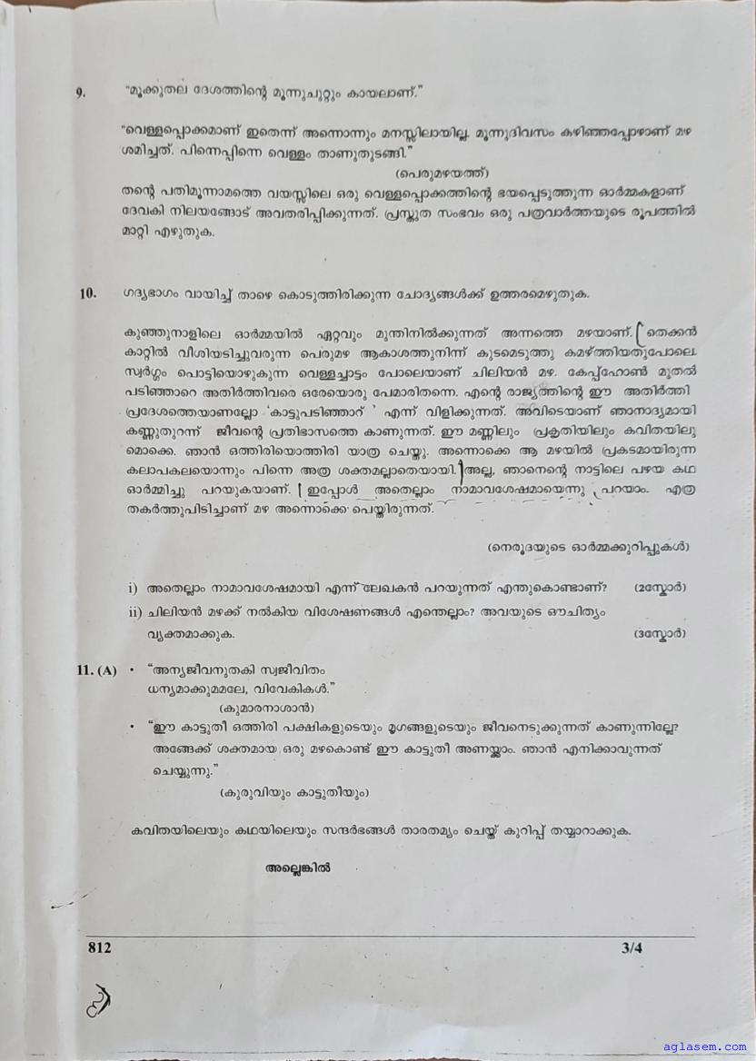 Kerala Std 8 First Term Malayalam II Question Paper with Answer Keys