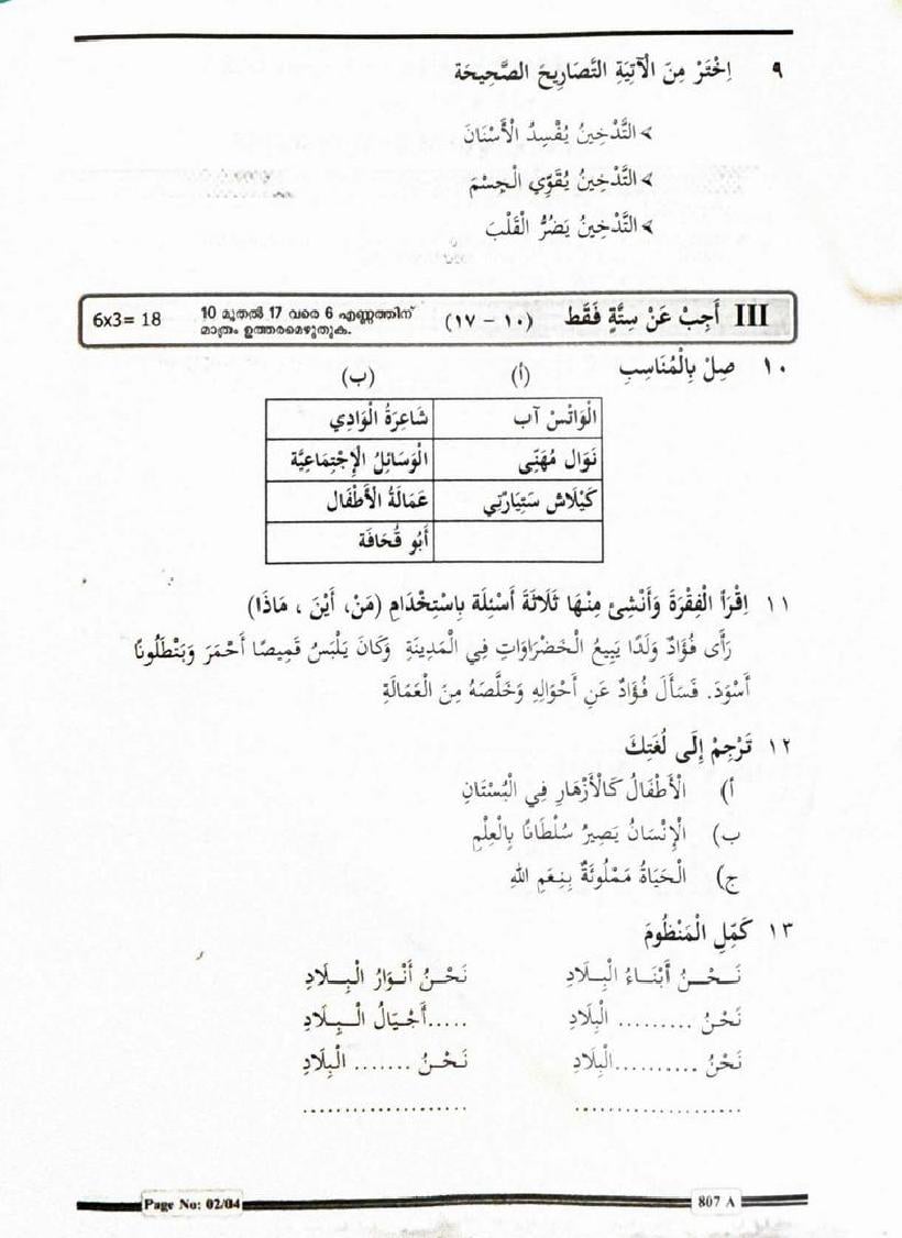 The Kerala Syllabus Question Papers for class 8th Class 8 Arabic is as follows.