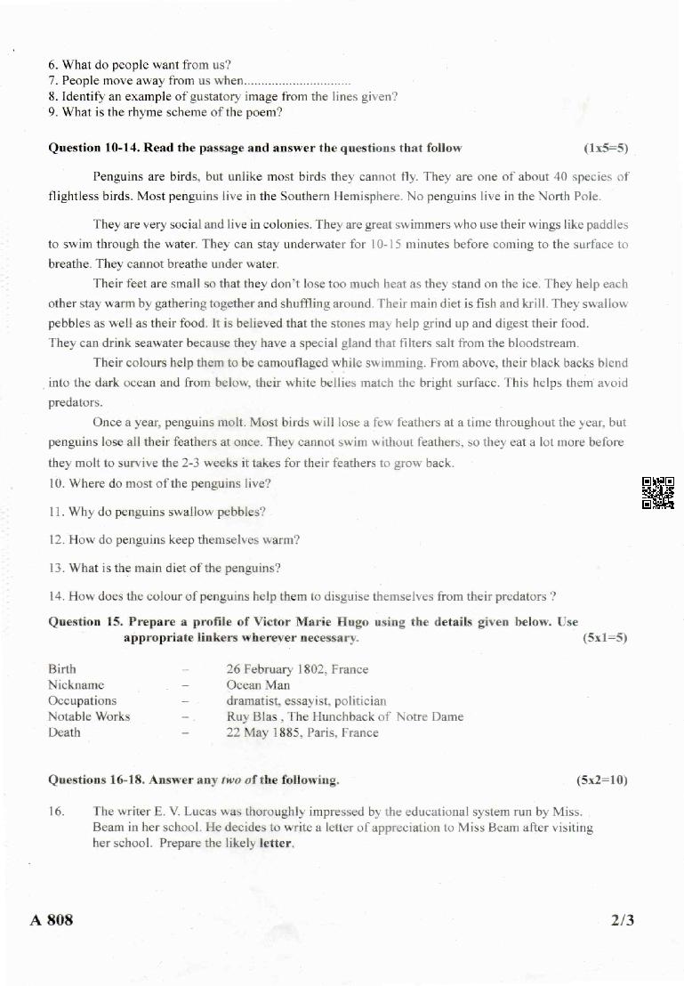 The Kerala Syllabus Question Papers for class 8th Class 8 English is as follows.