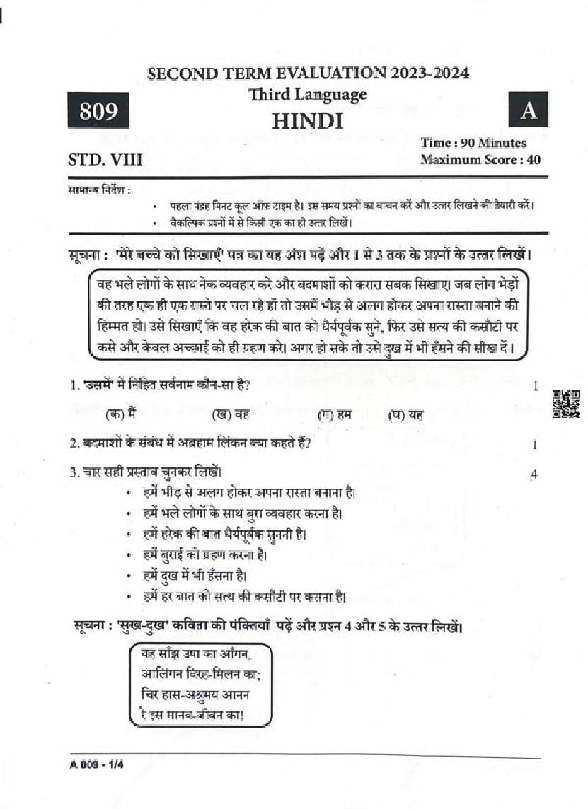 | Subject | Hindi |