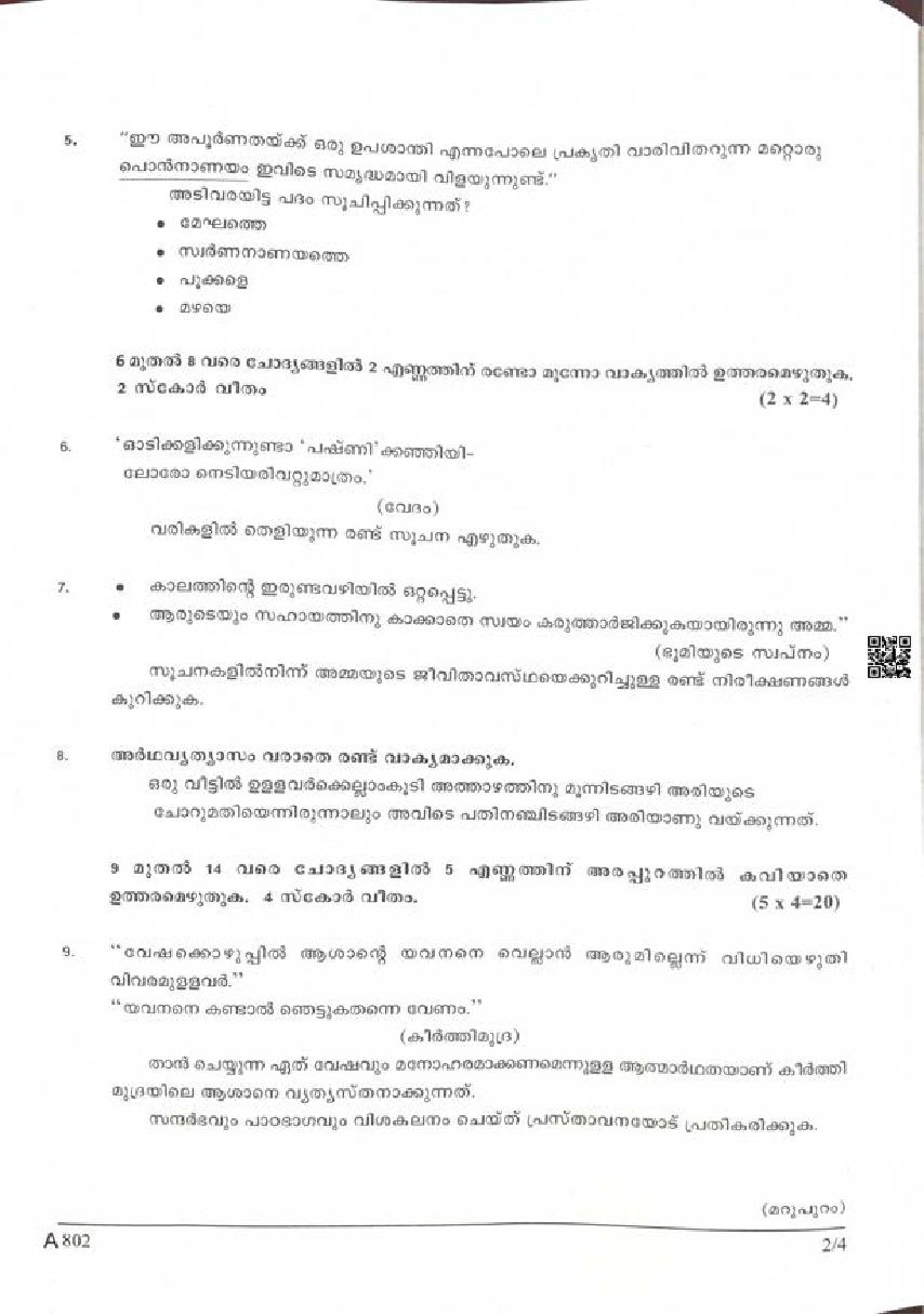 | Paper Here | Kerala Class 8 Second Terminal Exam Malayalam I Question Paper |