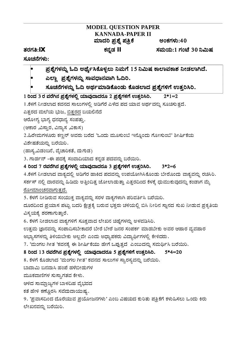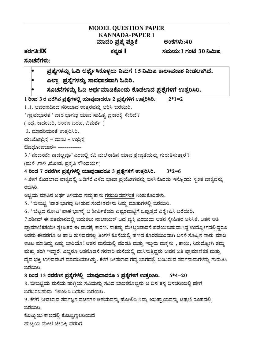 - Kerala 9th Standard Kannada Sample Paper PDF