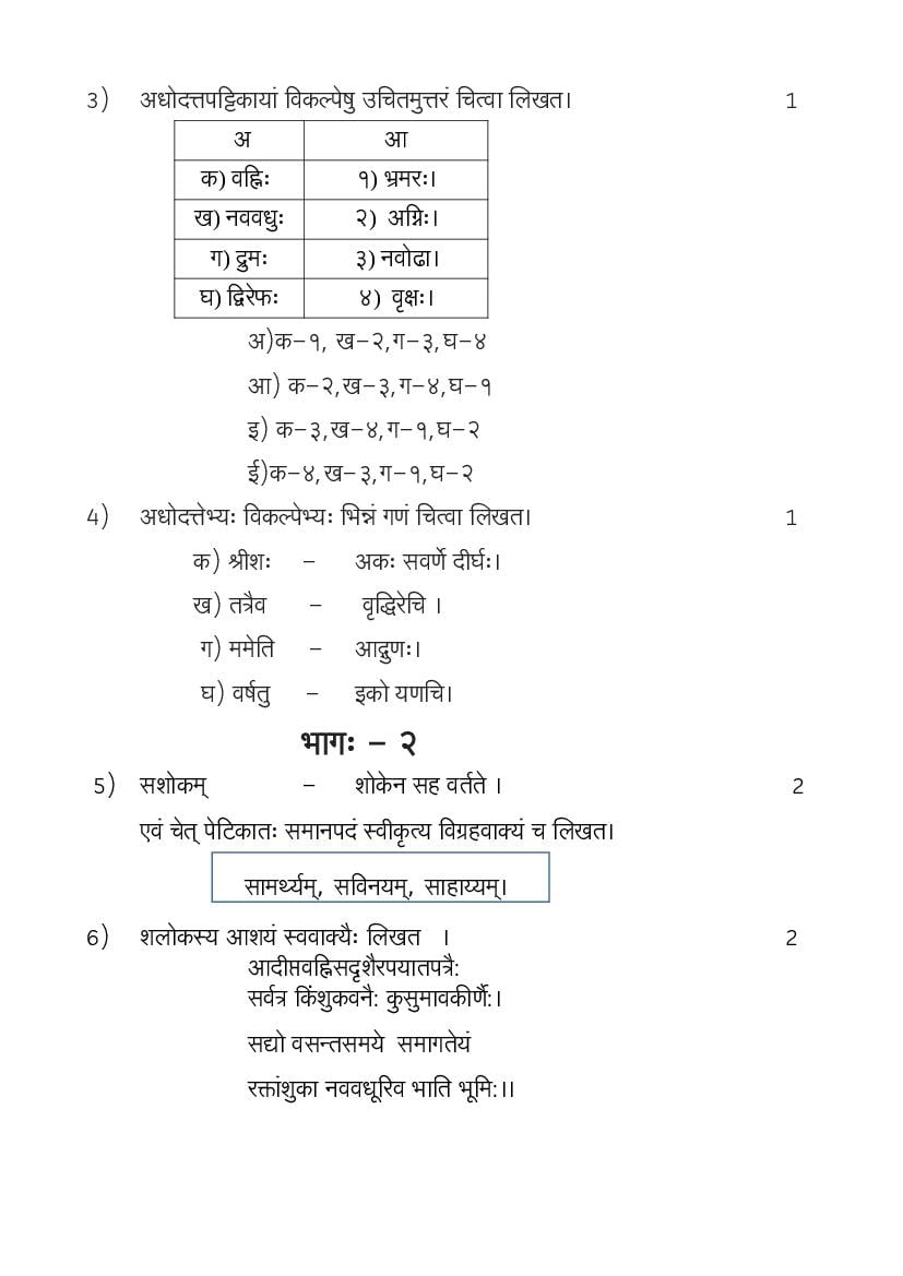 • Class 9 Sanskrit Onam Exam Practice Paper