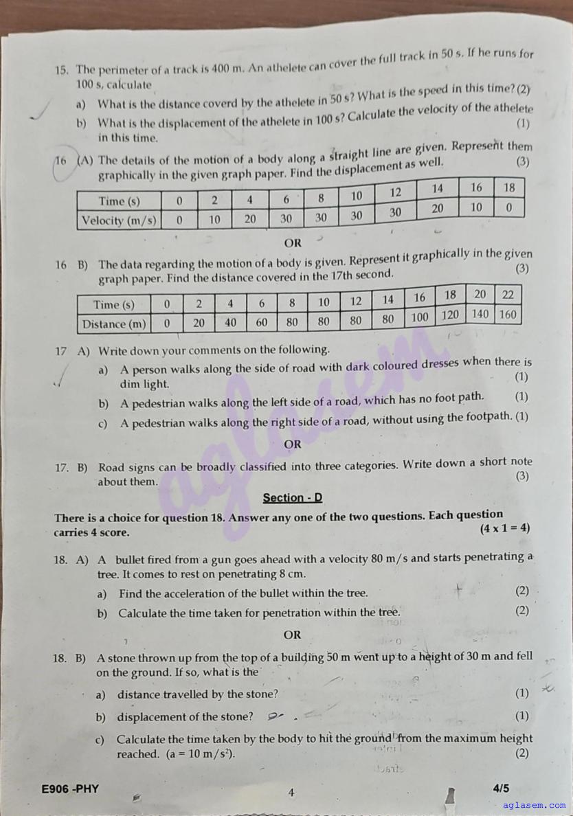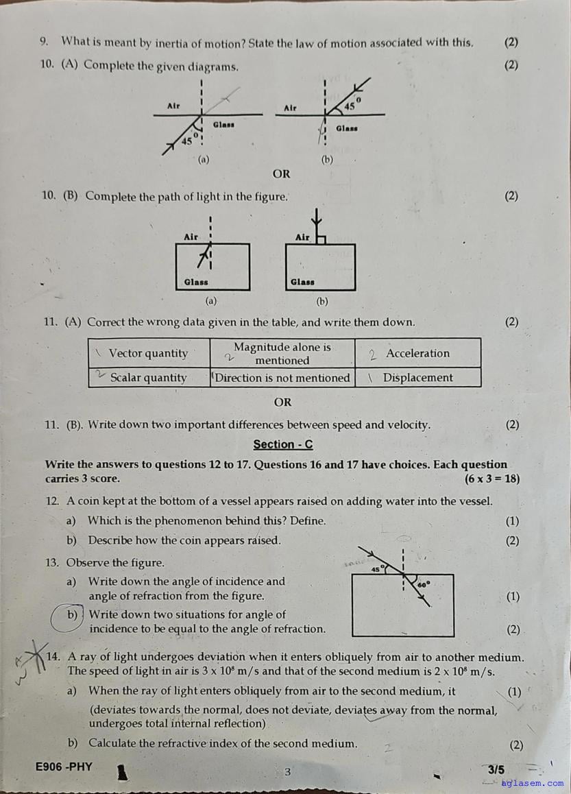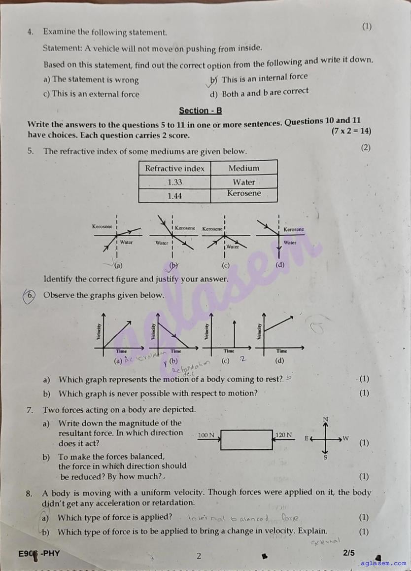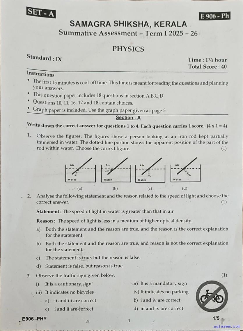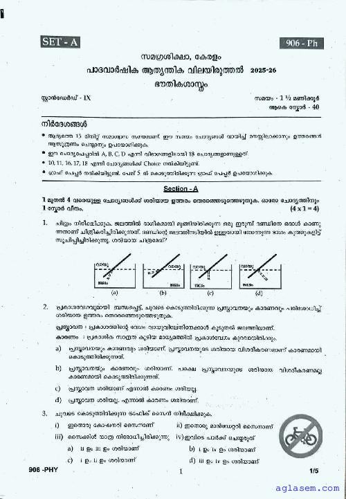 | Paper Here | Kerala Class 9 First Terminal Exam Physics Question Paper |
