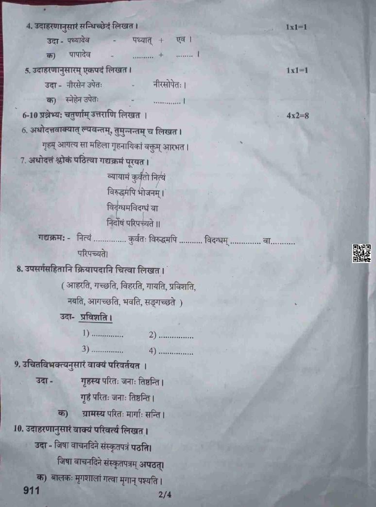 Class 9 Sanskrit Onam Exam Question Paper 2023-24 Click Here to Download Question Paper PDF