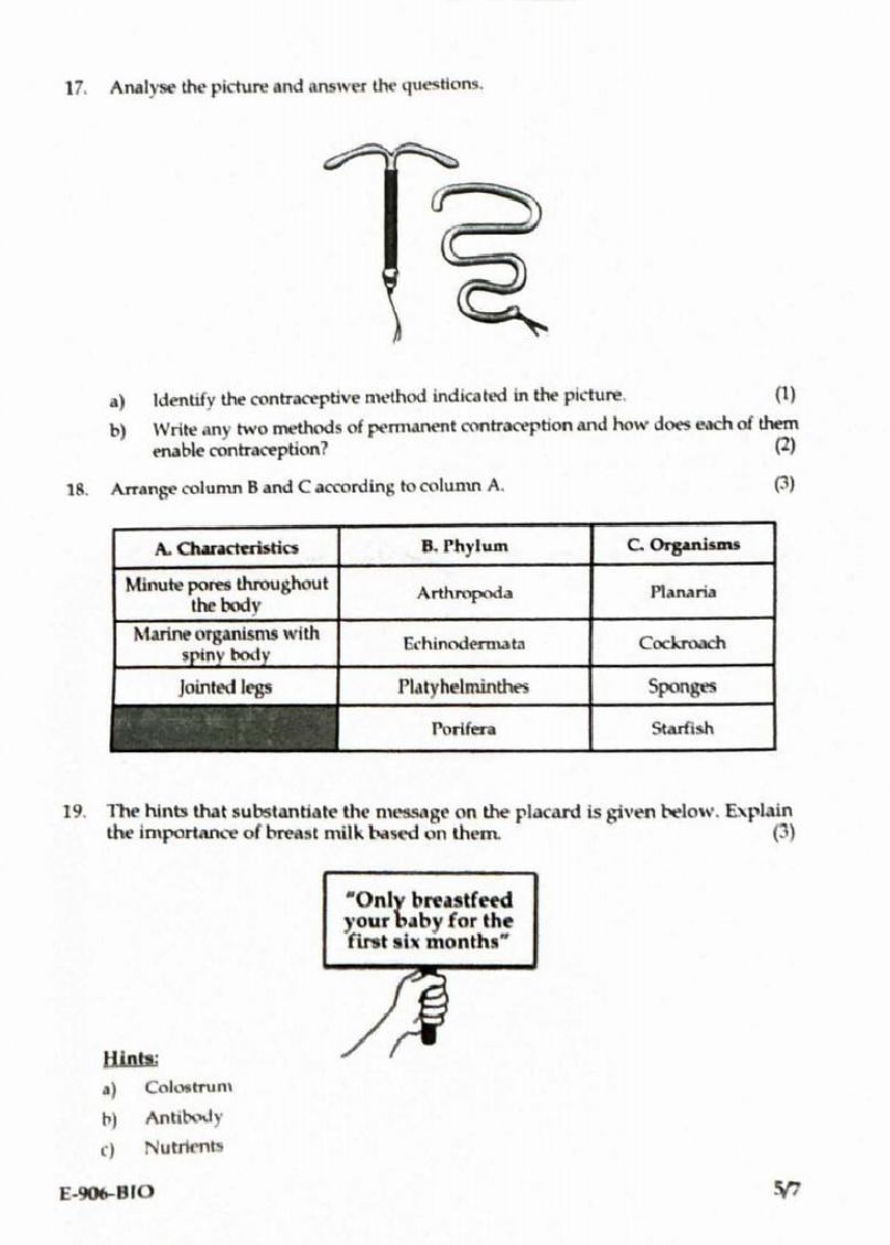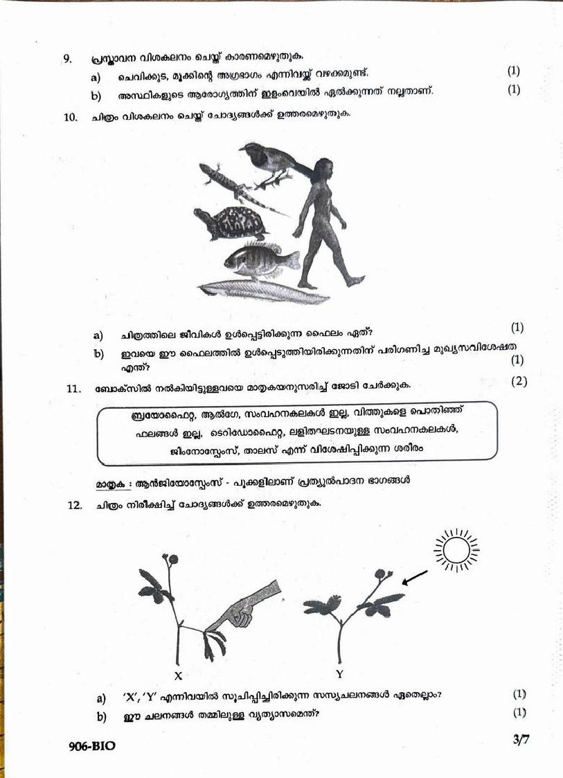 | Educational Resource Here | Kerala Syllabus Previous Question Papers Class 9 Biology |