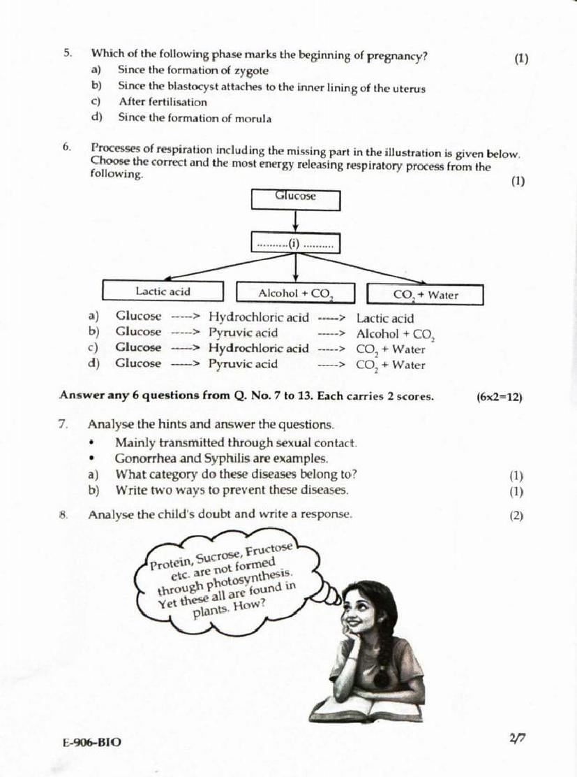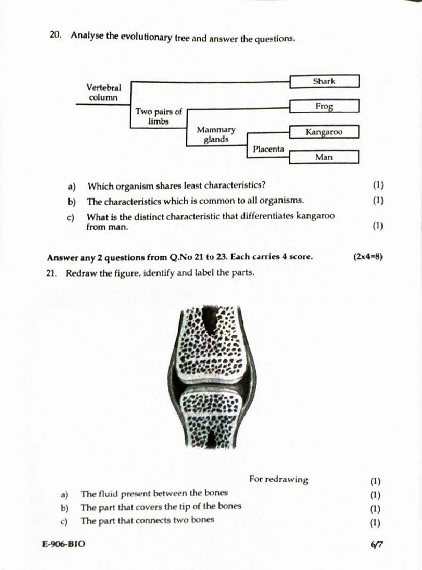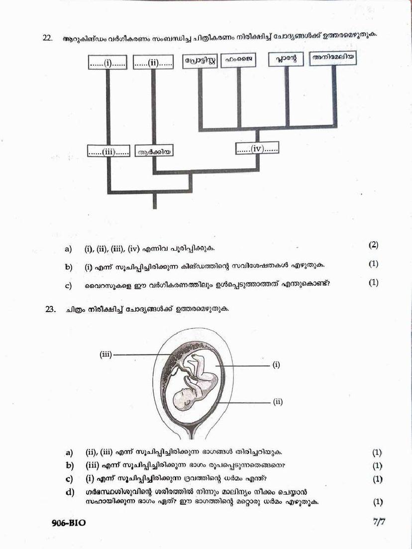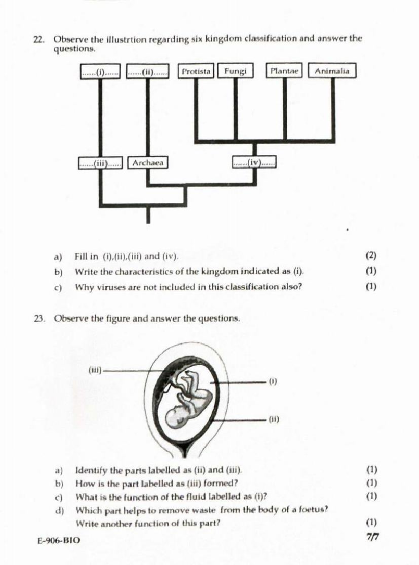 The Kerala Syllabus Question Papers for class 9th Class 9 Biology is as follows.