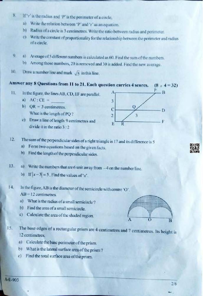 | Educational Resource Here | Kerala Syllabus Previous Question Papers Class 9 Maths |
