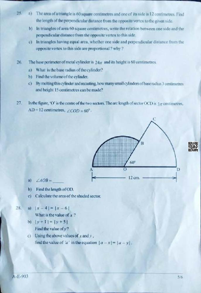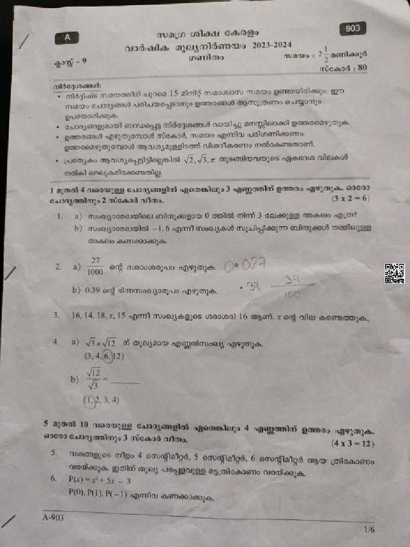 The Kerala Syllabus Question Papers for class 9th Class 9 Maths is as follows.