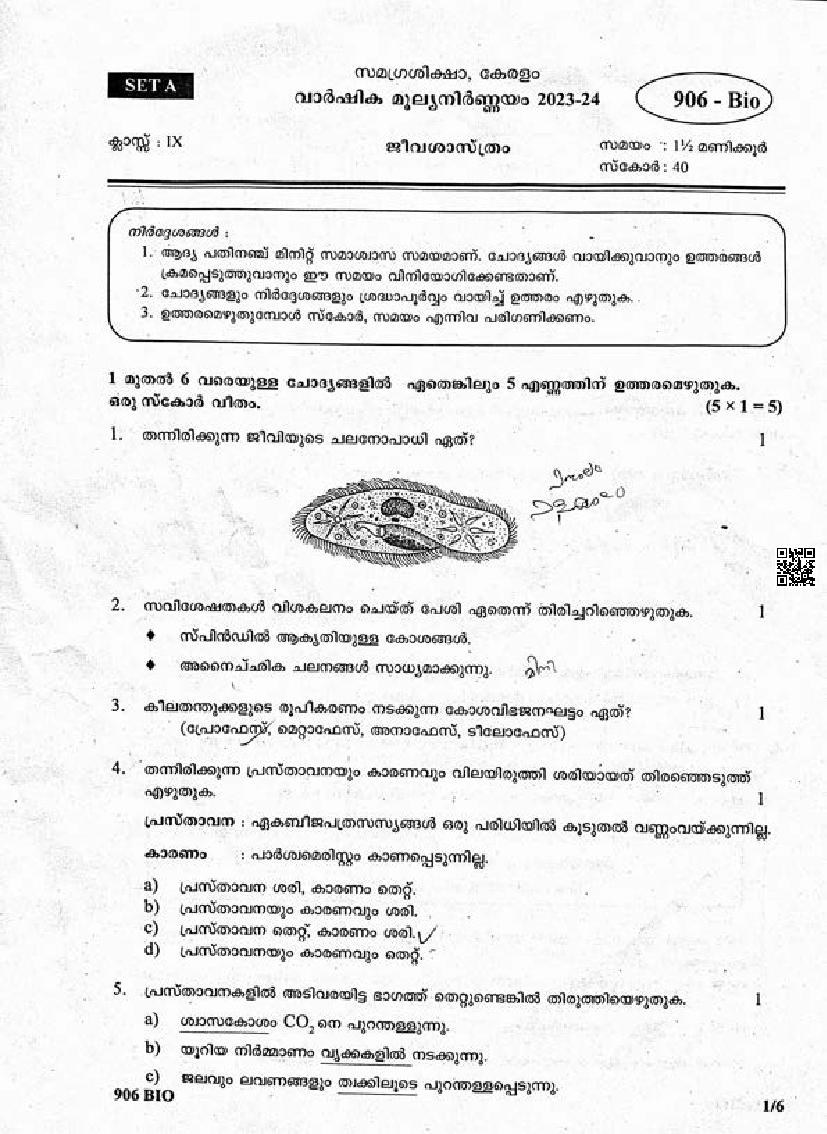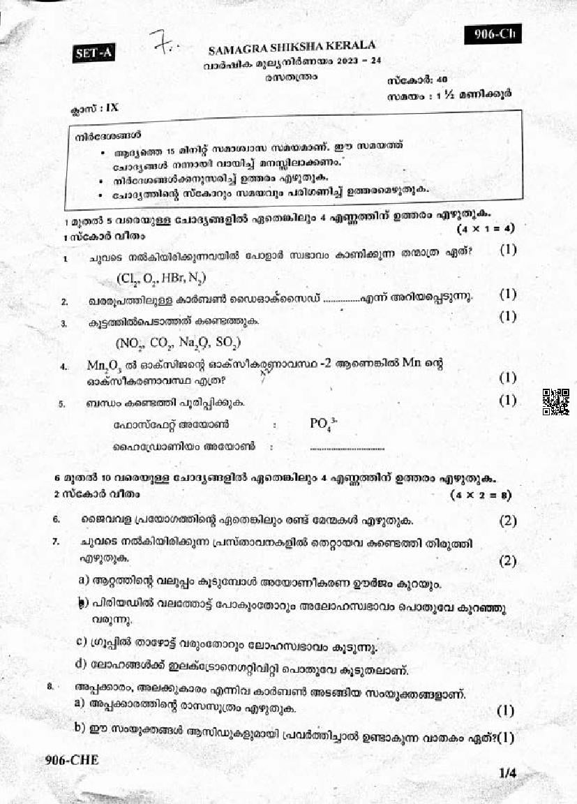 Kerala Class 9 Science Question Paper 2024 Download Link – Click Here to Download Question Paper PDF