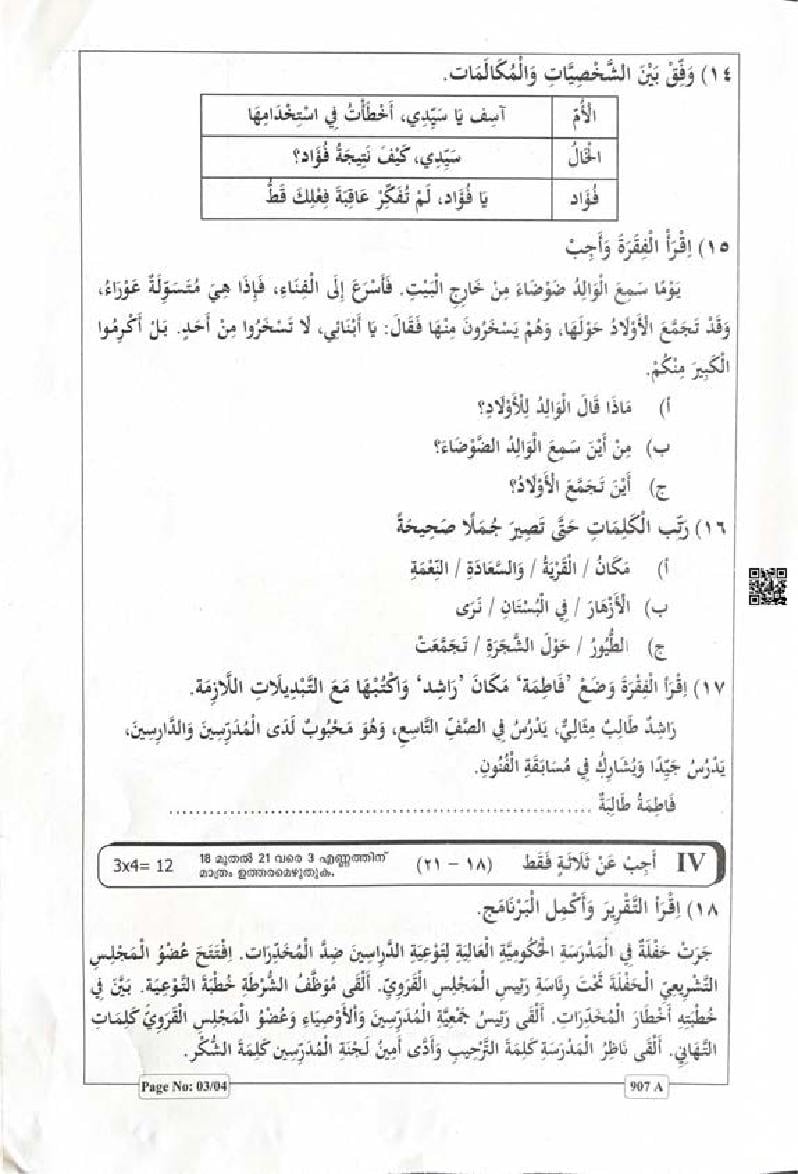 | Paper Here | Kerala Class 9 Second Terminal Exam Arabic Question Paper |