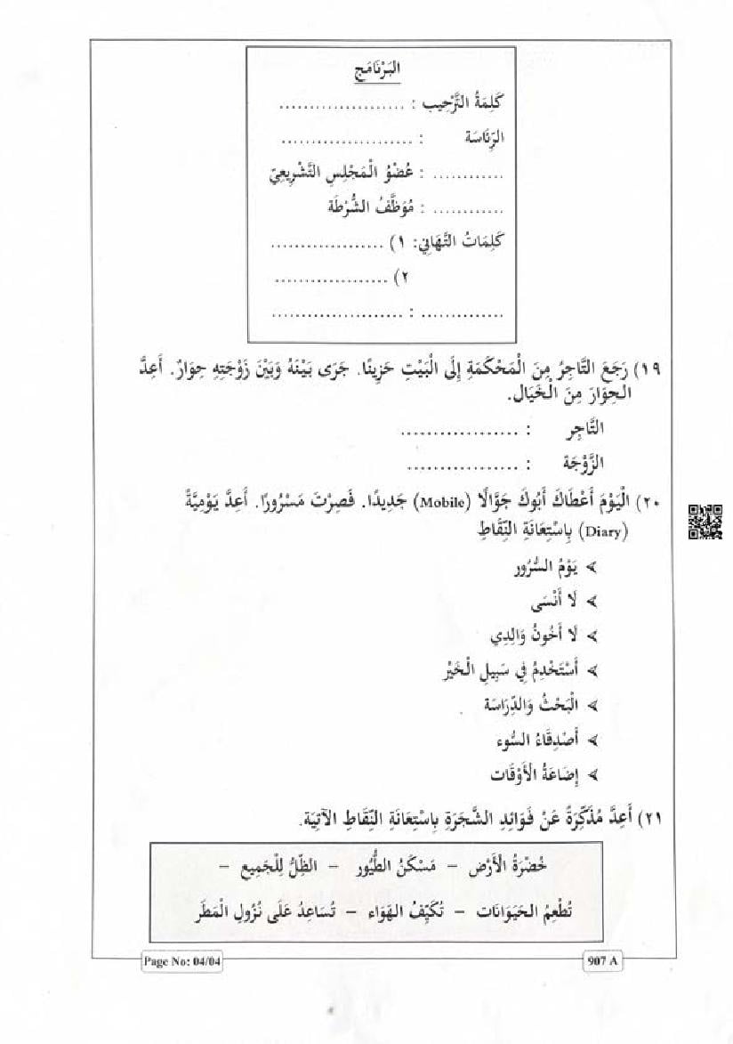 Class 9 Arabic Christmas Exam Question Paper 2024
