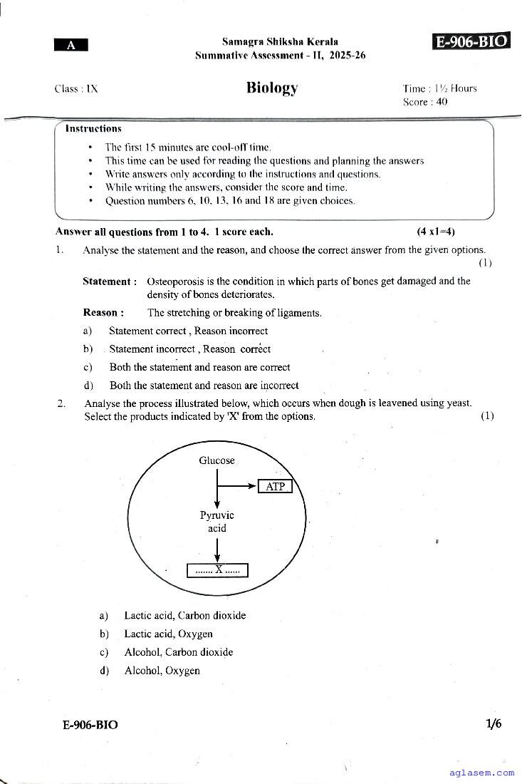 Class 9 Biology Christmas Exam Question Paper 2026 is published after the exam. You can download the Kerala Std 9 Second Term Biology Question Paper PDF from Aglasem. The latest and previous year question paper of Christmas Exam for class 9 Biology helps you prepare for the upcoming Second Term Biology test. After studying with this Kerala Syllabus 9th Standard Biology Question Paper, you can download Christmas Exam Question Paper for Class 9 for other subjects as well.