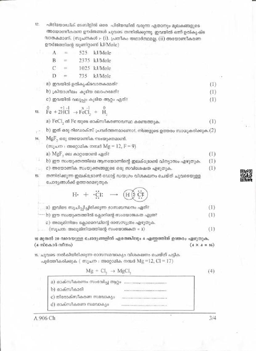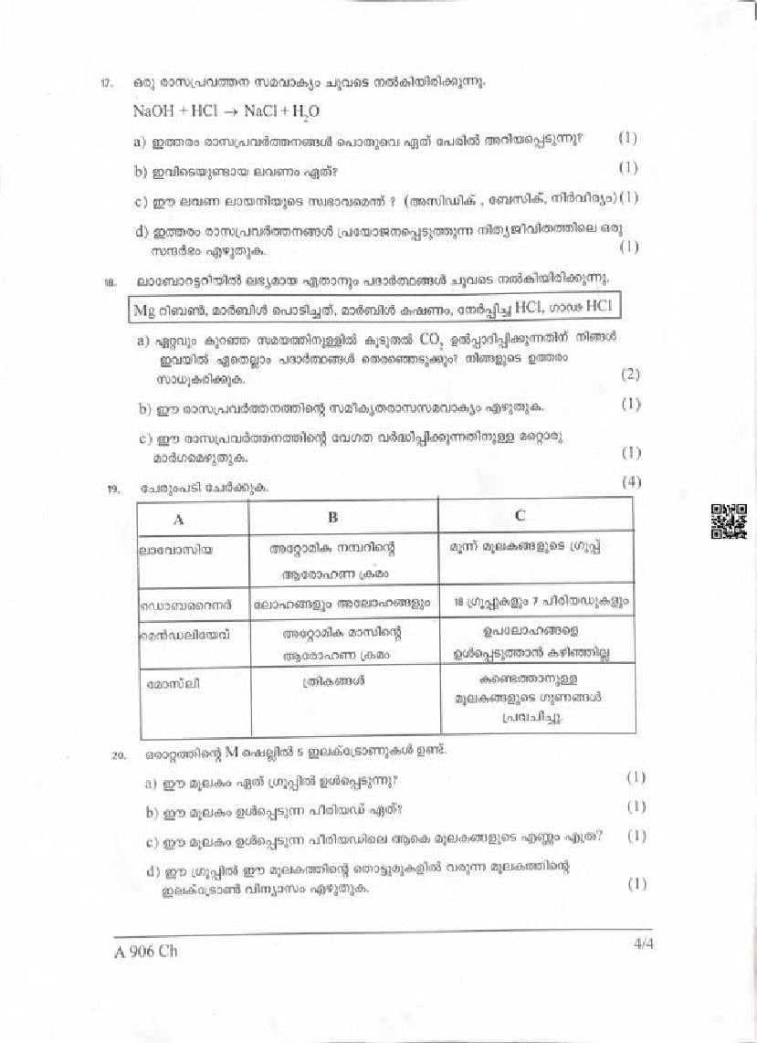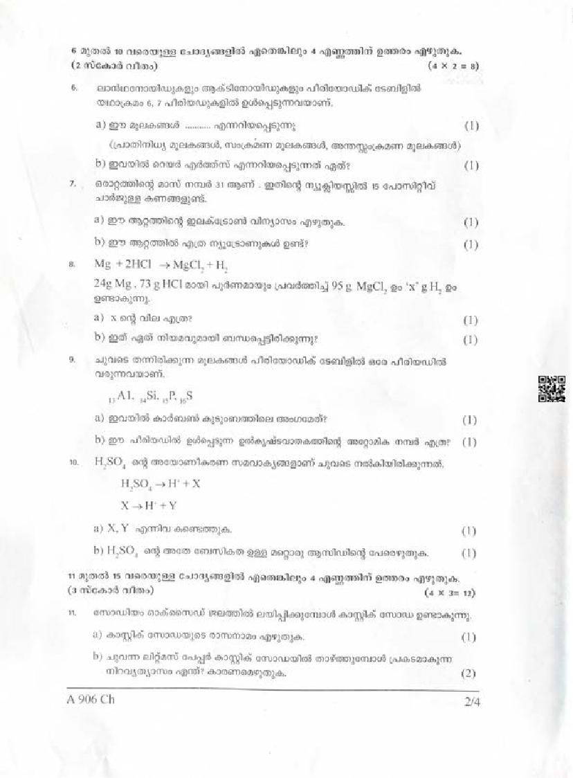 | Paper Here | Kerala Class 9 Second Terminal Exam Chemistry Question Paper |